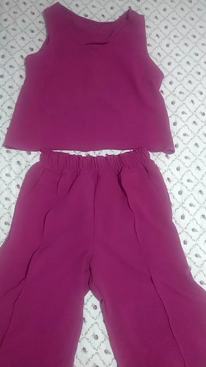 Conjunto Feminino feito em tecido duna calça em estilo pantalona e blusa regata