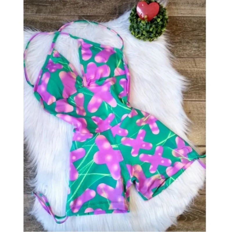 Academia cordinha lateral macaquinho fitness com bojo - estampa 13