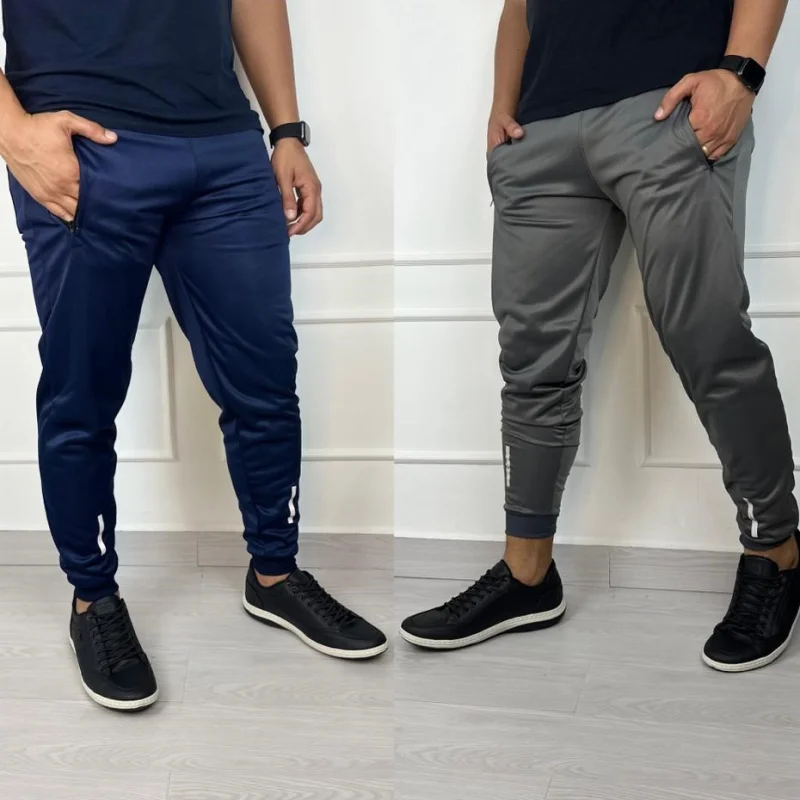 Agasalho Jogger Tradicional Casual e Treino - Kit Calça Skinny Refletivo Dry Fit - Kit 1 Azul + 1 cinza