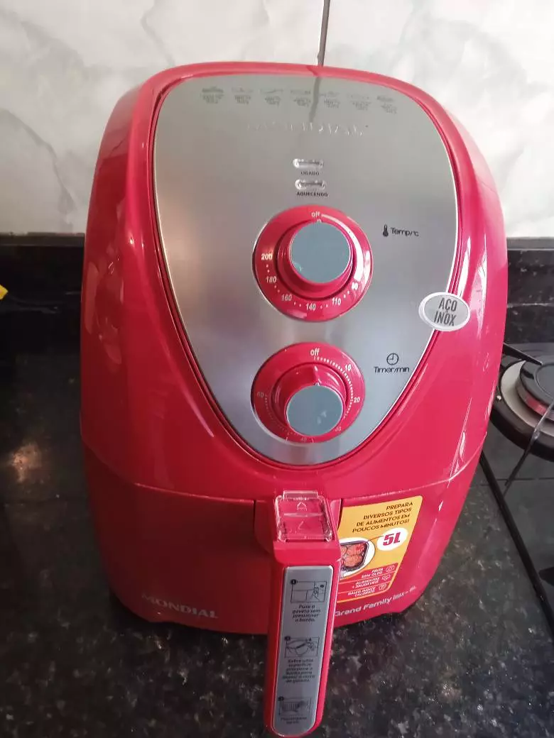 Cuba e cesto com revestimento antiaderente Lâmpadaspiloto que indicam o funcionamento luz vermelha e o aquecimento luz verde do produto Painel em aço inox Acompanha livro de receitas Uso residencial 1 ano de garantia