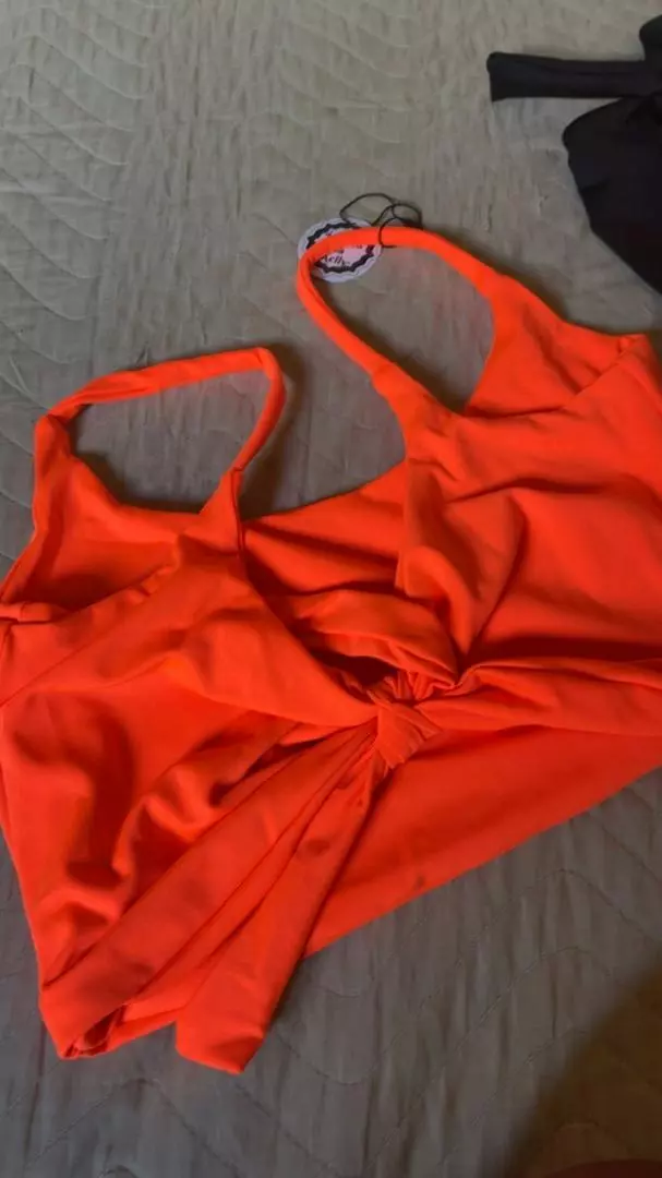 Compre o top cropped 3 em 1 laço laranja neon, perfeito para o verão, com alças modernas que seguem a tendência das blogueiras. Aproveite as promoções e descontos na loja online de roupas Raryel.