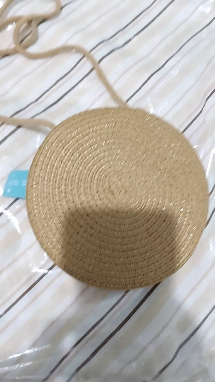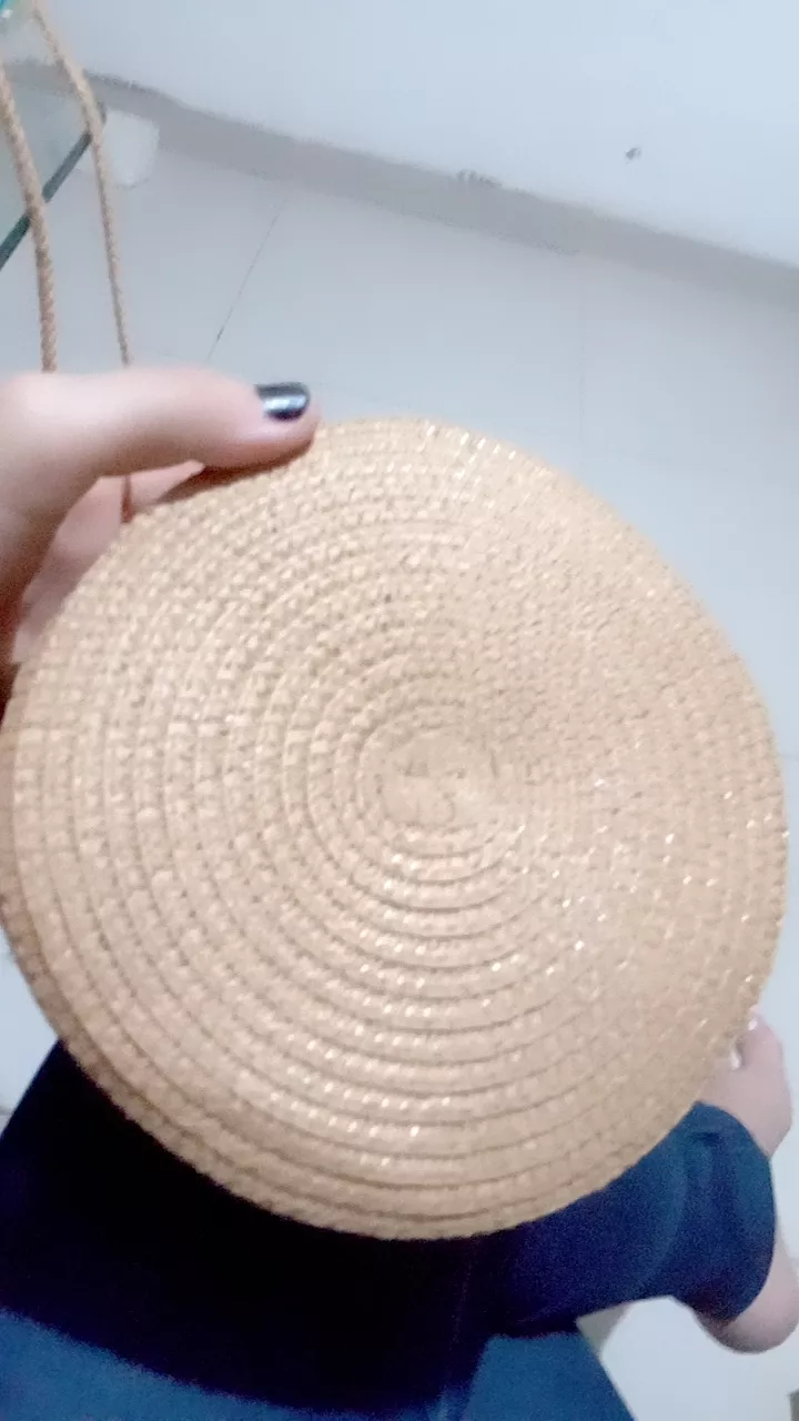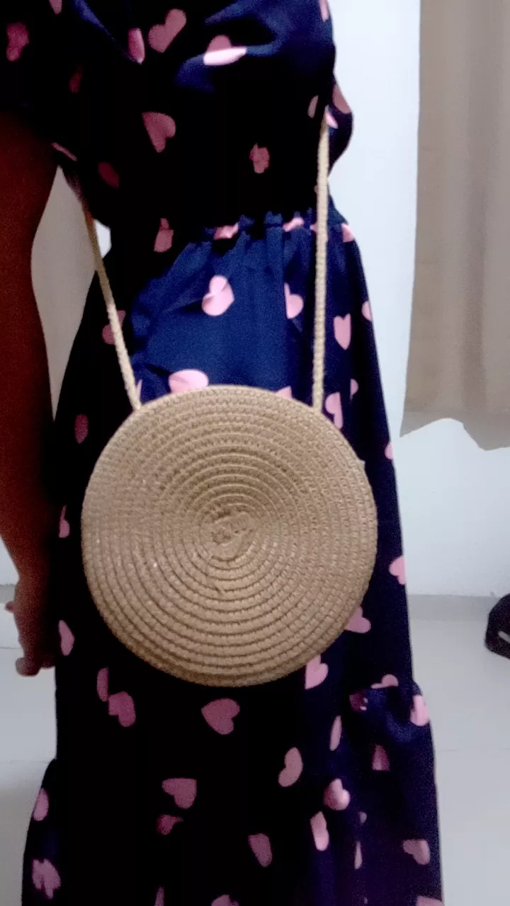 Alça Comprida Bolsa Redonda Pequena Palha Sintética - palha