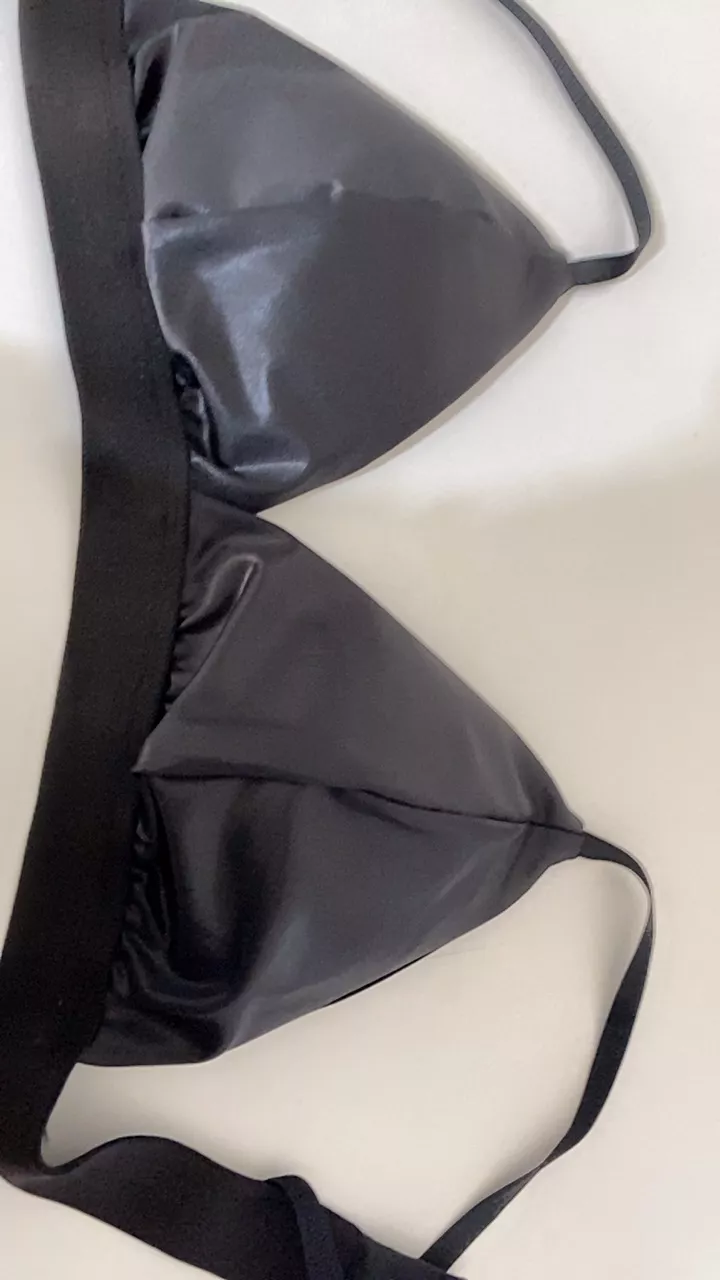 Alça de couro fake: tendência moda blogueira. Cropped/top com bojo em cirre. - Preto