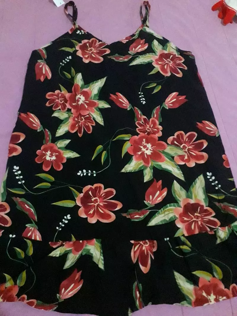 Alça soltinho feminino vestido curto viscose - Preto com flores