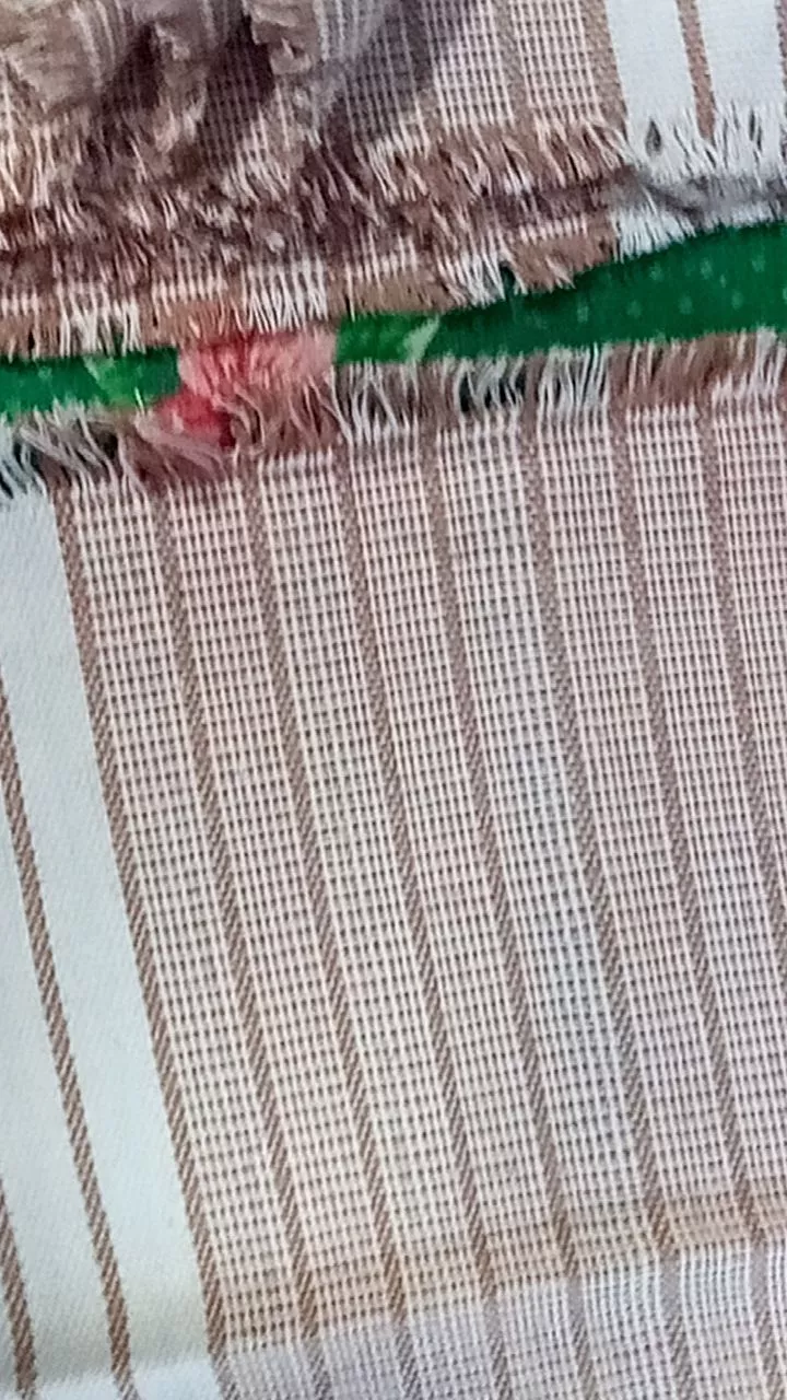 Algodão Chic Tear Americano Jogo - 7 peças - Cru com listrado vermelho