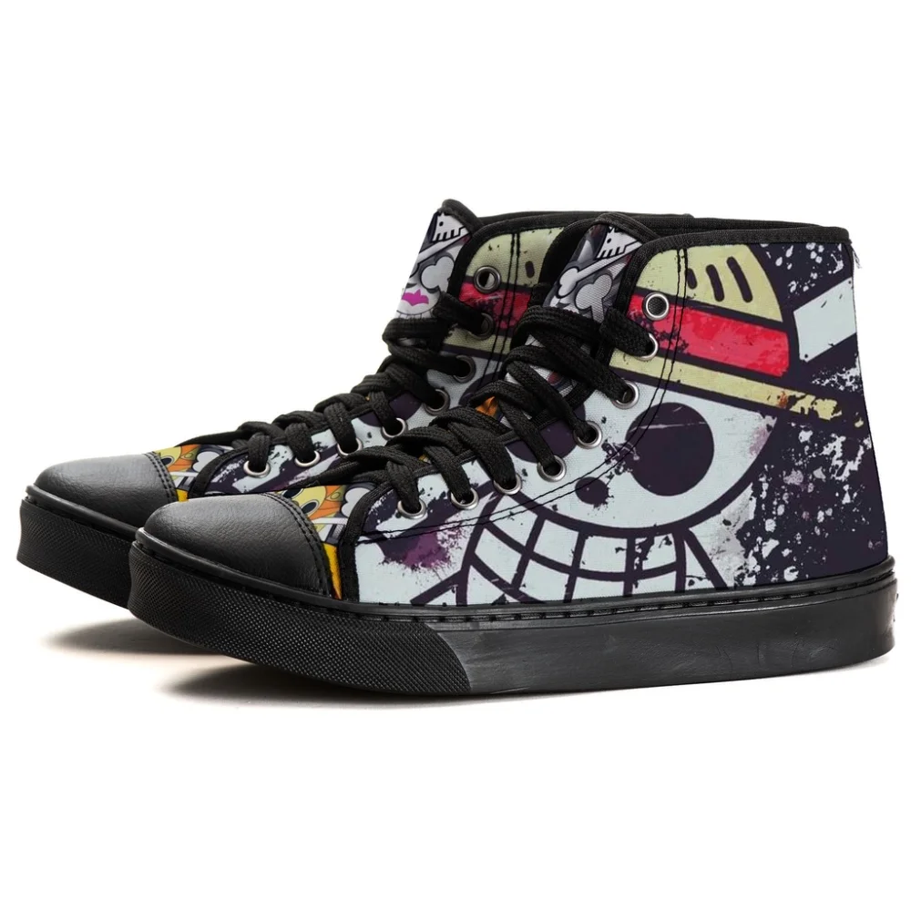 Anime Chapéu de palha Tênis Cano Alto Caveira One Piece - Preto
