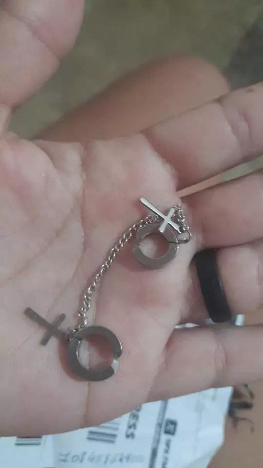 Argola com Cruz e Corrente em Aço Inox - Modelo Variado - 1furo+pressão com Cruz