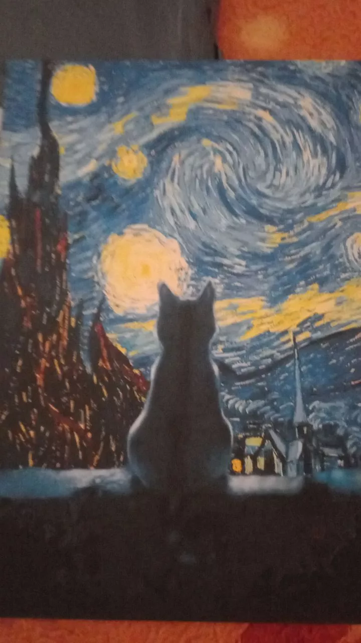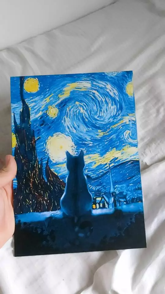 Compre a placa decorativa do gato noite estrelada inspirada na famosa obra de Van Gogh. Adicione um toque artístico e elegante à sua decoração. Aproveite os preços baixos e promoções na loja online de roupas Raryel.