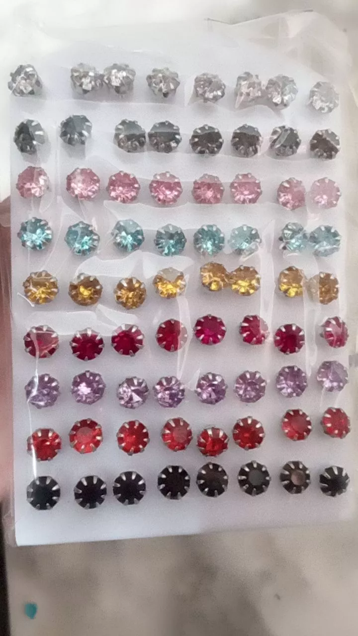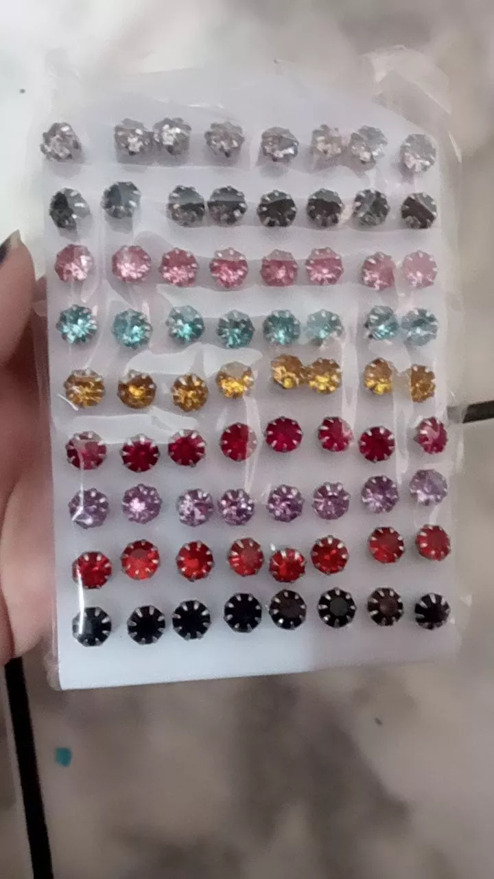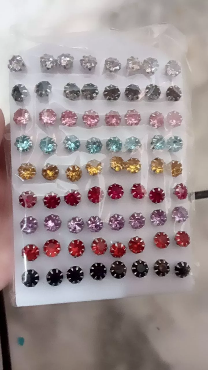 Cartela contendo 72 brincos 36 pares