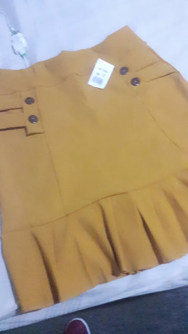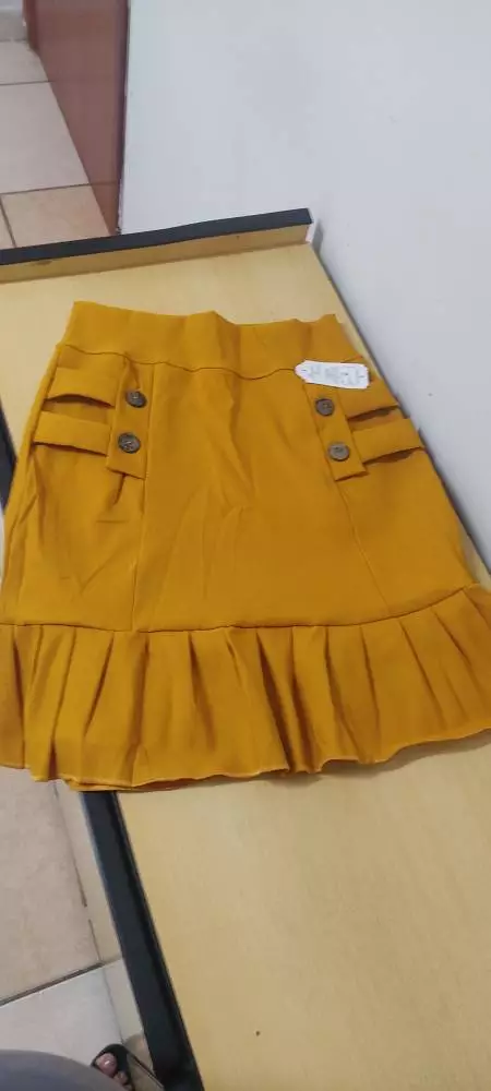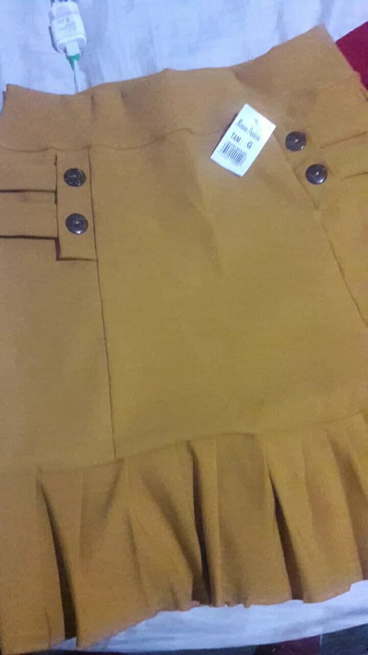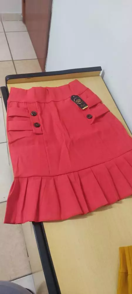 Compre a Saia Feminina em Bengaline com detalhe de botões e babadinho na loja online Raryel. Aproveite preços baixos, promoções e descontos exclusivos!