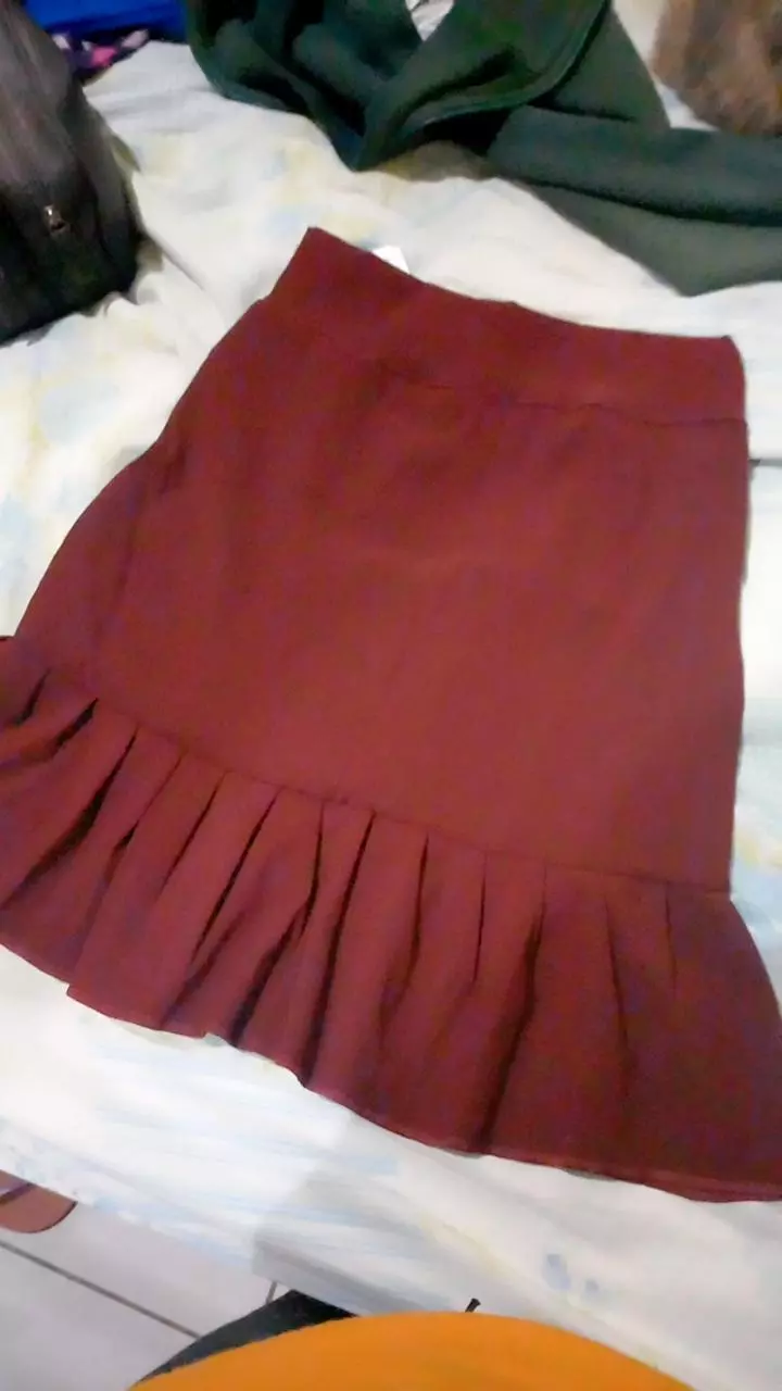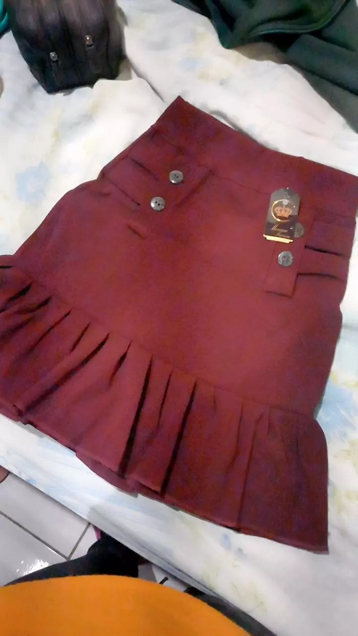 Compre a Saia Feminina em Bengaline com detalhe de botões e babadinho na loja online Raryel. Aproveite preços baixos, promoções e descontos exclusivos!