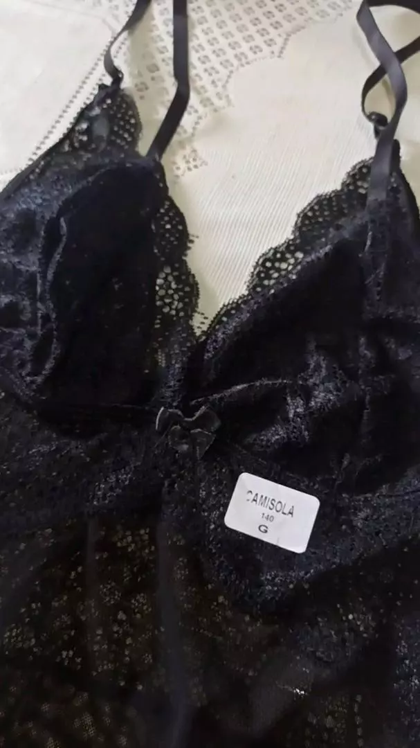 Barata Feminino Diluxo Lingerie Preta Tule Camisola - M