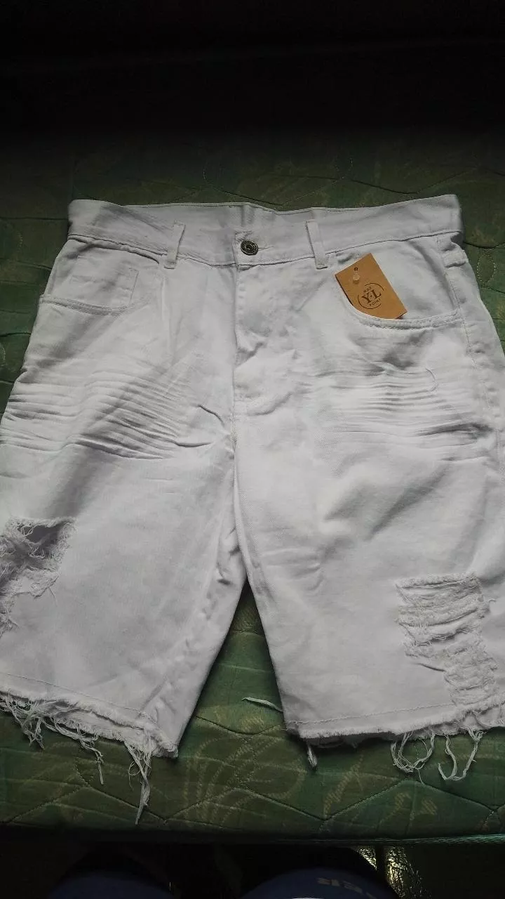 Bermuda Branca Rascada Decido de Sarja qualidade Bem TOP