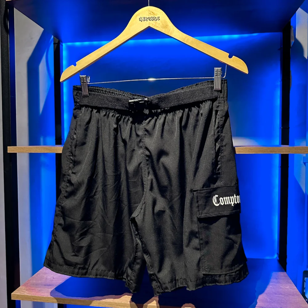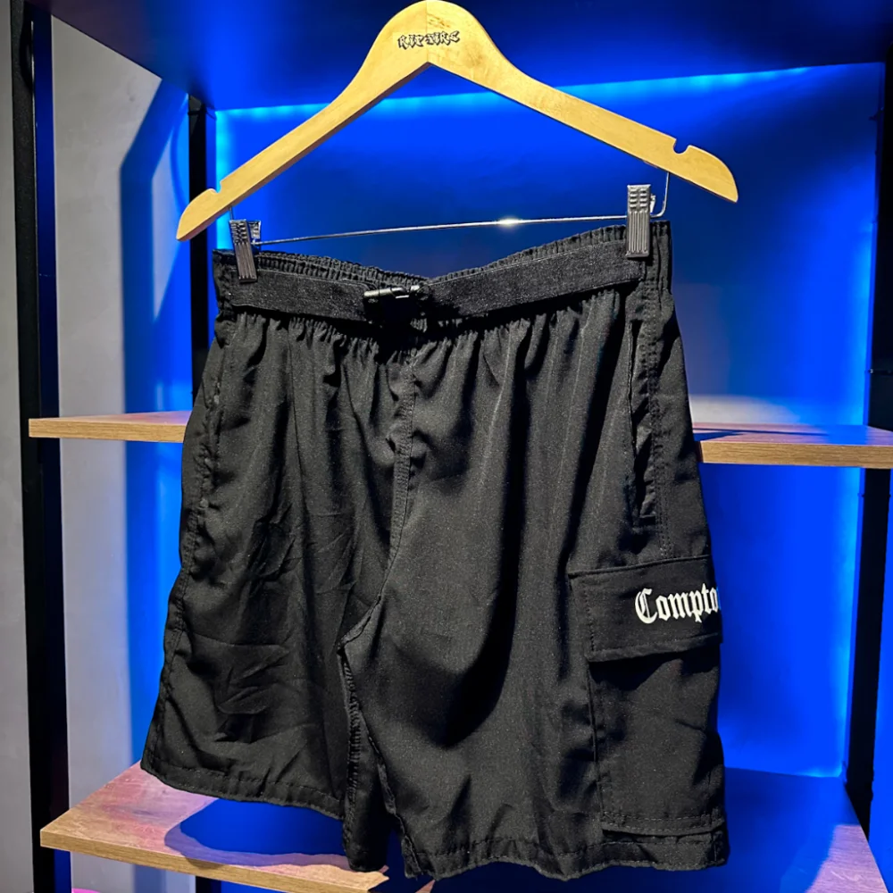 Compre a Bermuda Masculina Compton com 3 bolsos, perfeita para o verão e estilo skate. Feita em tecido Tac tel Elastano, oferece conforto e liberdade de movimento. Aproveite os preços baixos, promoções e descontos comprando na loja online de roupas Raryel.