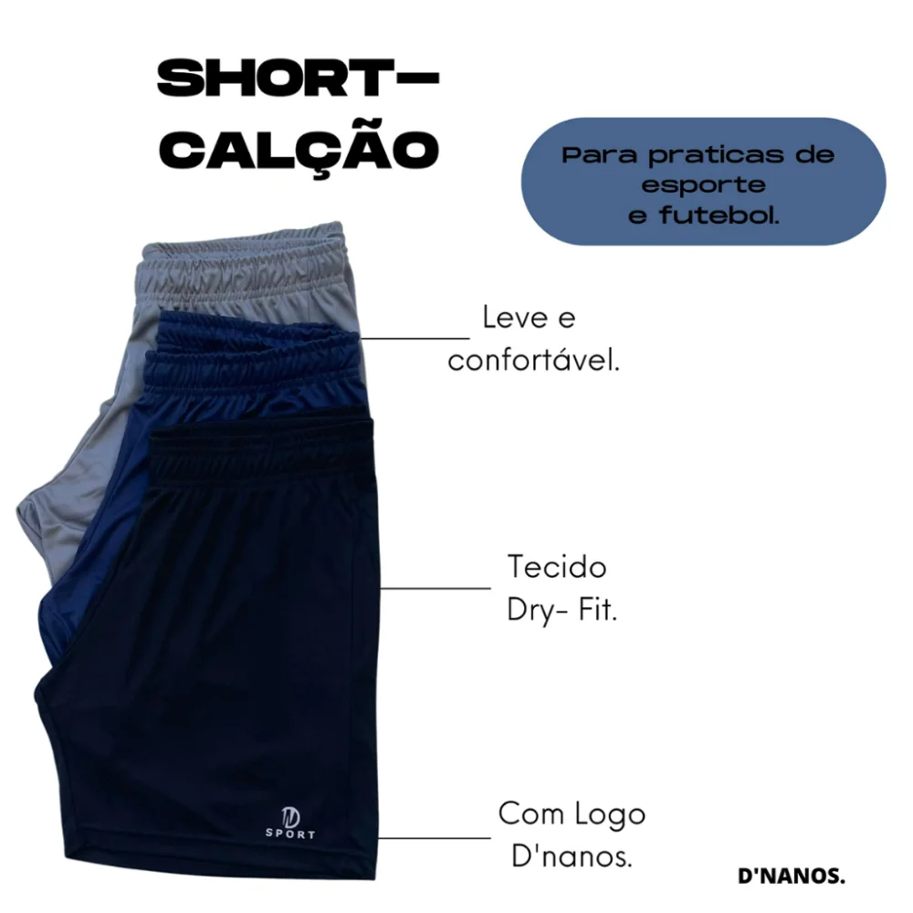 Kit com 3 Short Bermuda Masculina Dri Leve Academia Corrida