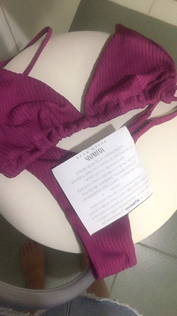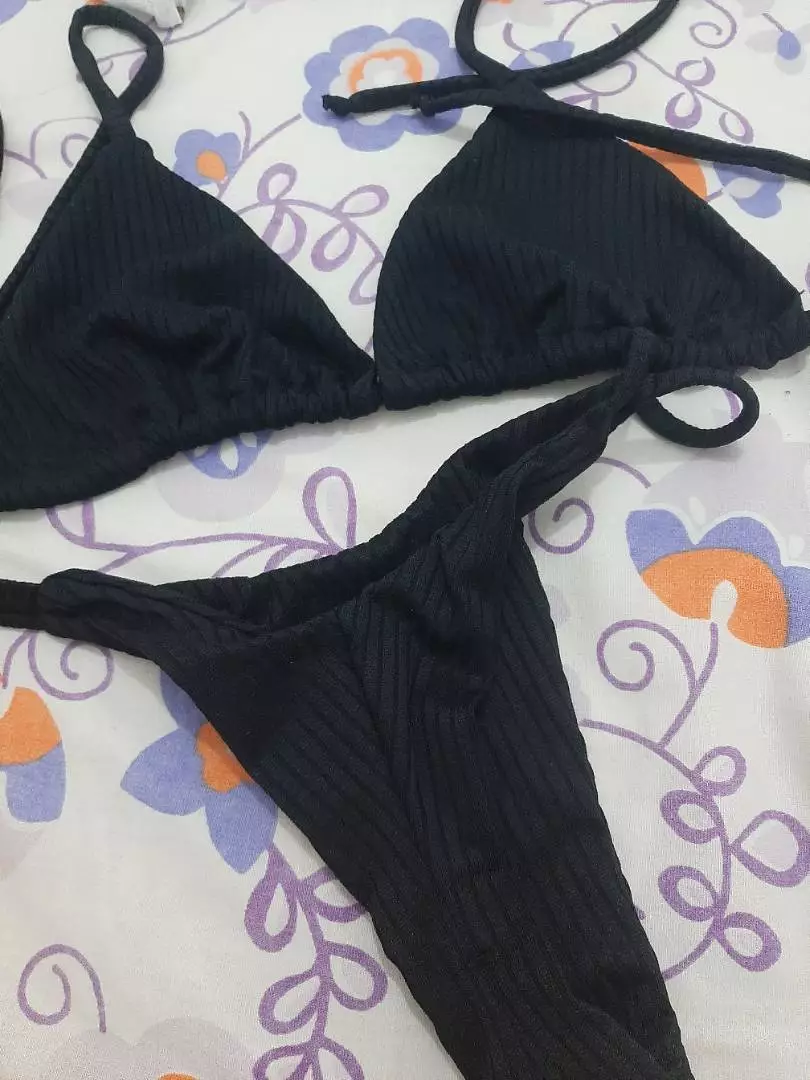 Biquíni cortininha com calcinha marquinha de fita fio duplo