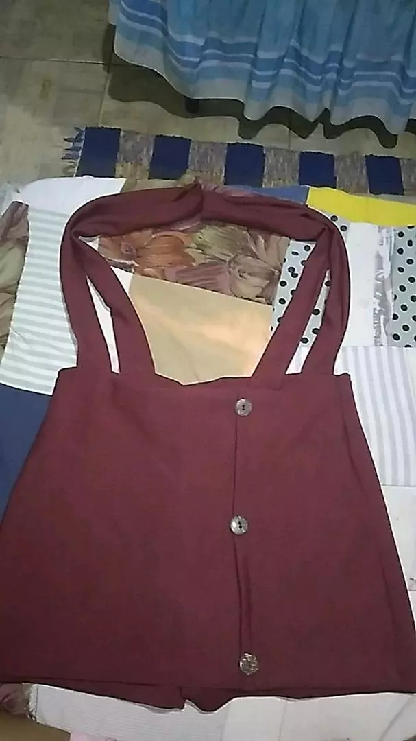 Blusa amarela + jardineira: perfeita combinação! Só hoje - Salopete Vinho