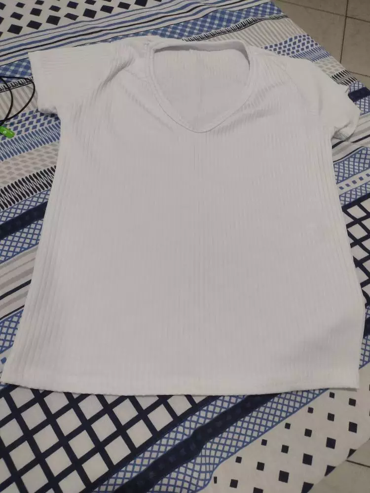 Compre a Blusa Blusinha Feminina Canelada Gola V Manga Curta Blogueira na loja online Raryel. Aproveite os preços baixos e promoções!
