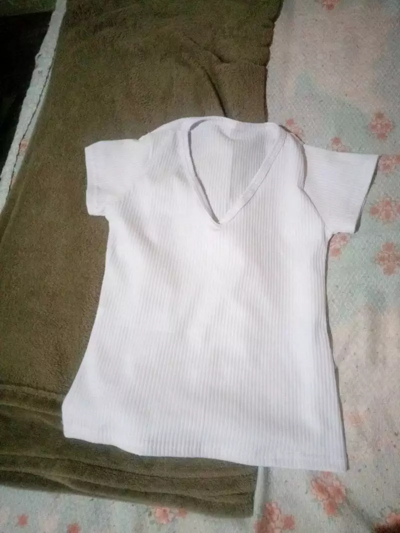 Compre a Blusa Blusinha Feminina Canelada Gola V Manga Curta Blogueira na loja online Raryel. Aproveite os preços baixos e promoções!