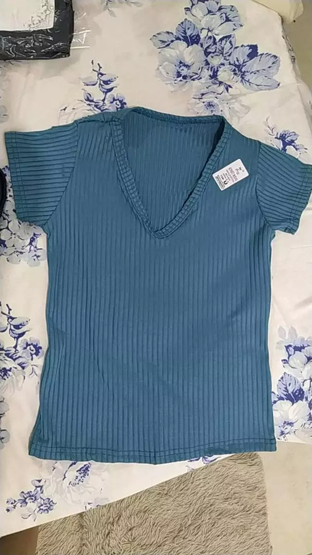 Compre a Blusa Blusinha Feminina Canelada Gola V Manga Curta Blogueira na loja online Raryel. Aproveite os preços baixos e promoções!