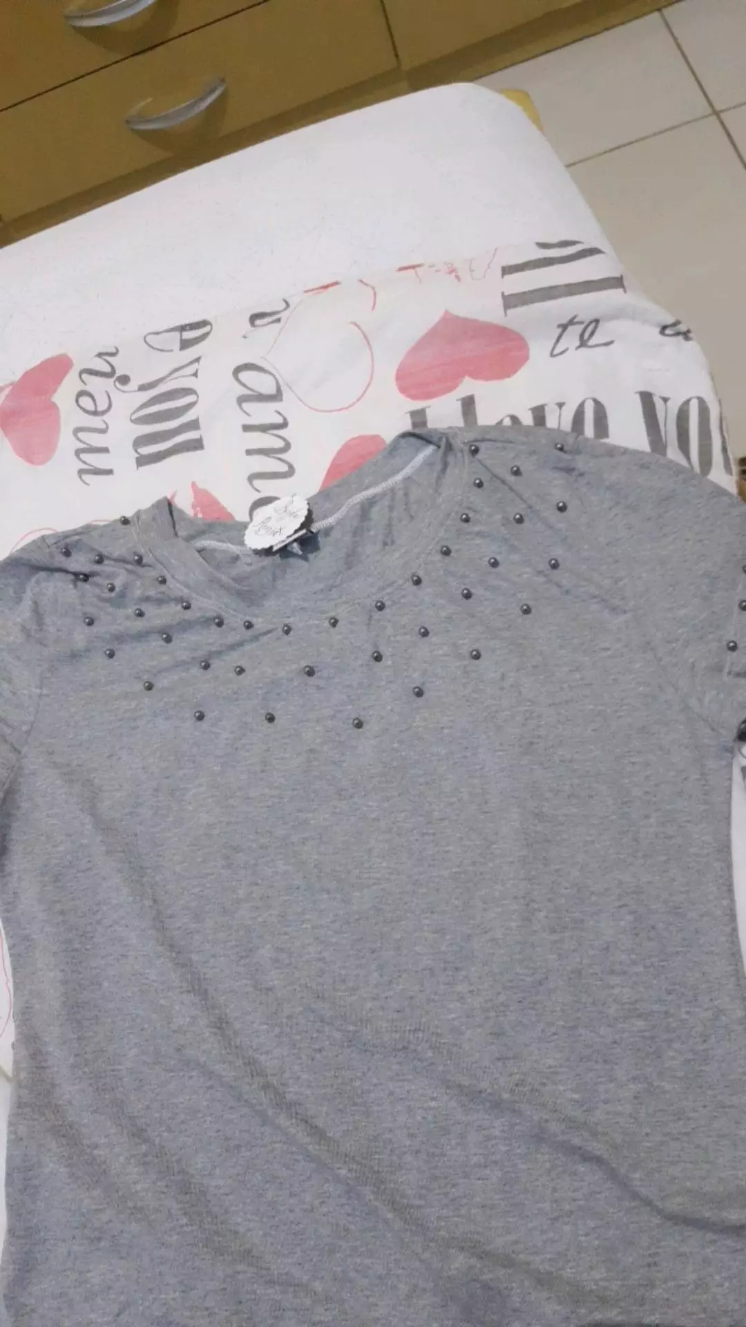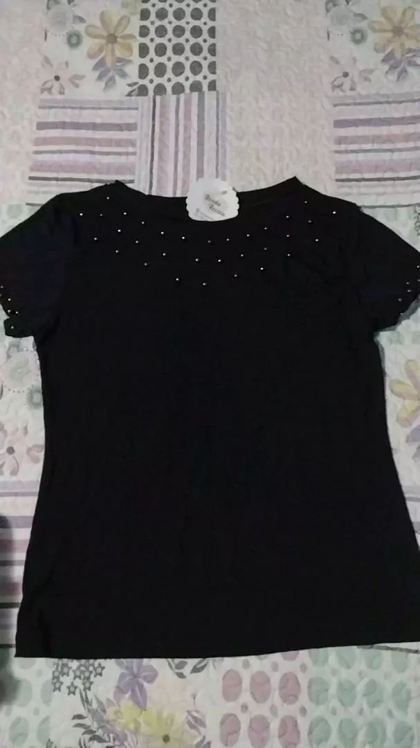 Compre a Blusa Feminina Manga Curta com detalhes em pérolas na loja online Raryel. Aproveite preços baixos e descontos especiais!