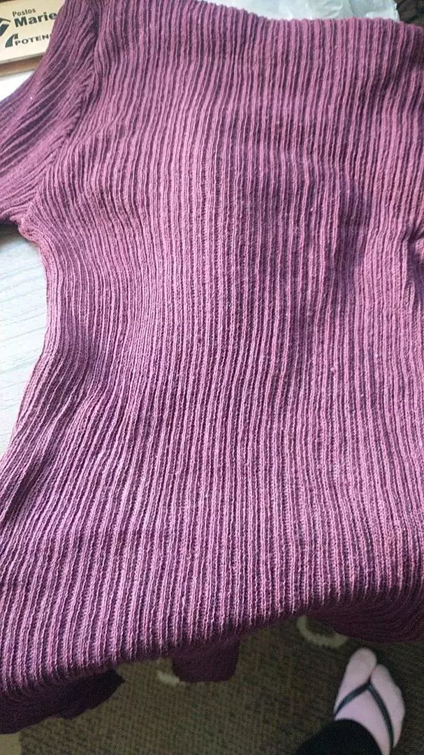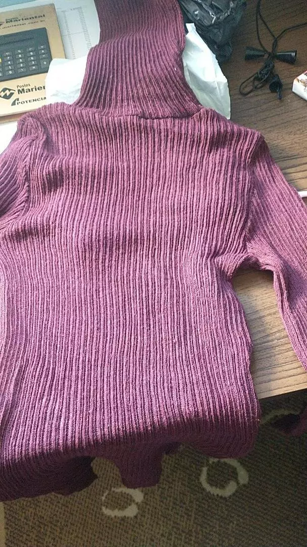 Modelo Cacharrel de Tricot Malha Canelada Gola Alta