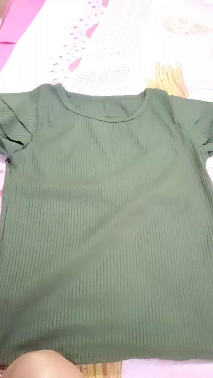 Blusa Canelada Três Babados Manga Curta Basica Sem Bojo Tamanho Unico: feita em tecido canelado de alta qualidade; possui três babados na manga curta; caimento impecável; confortável e ajusta-se ao corpo; ideal para diversas ocasiões.