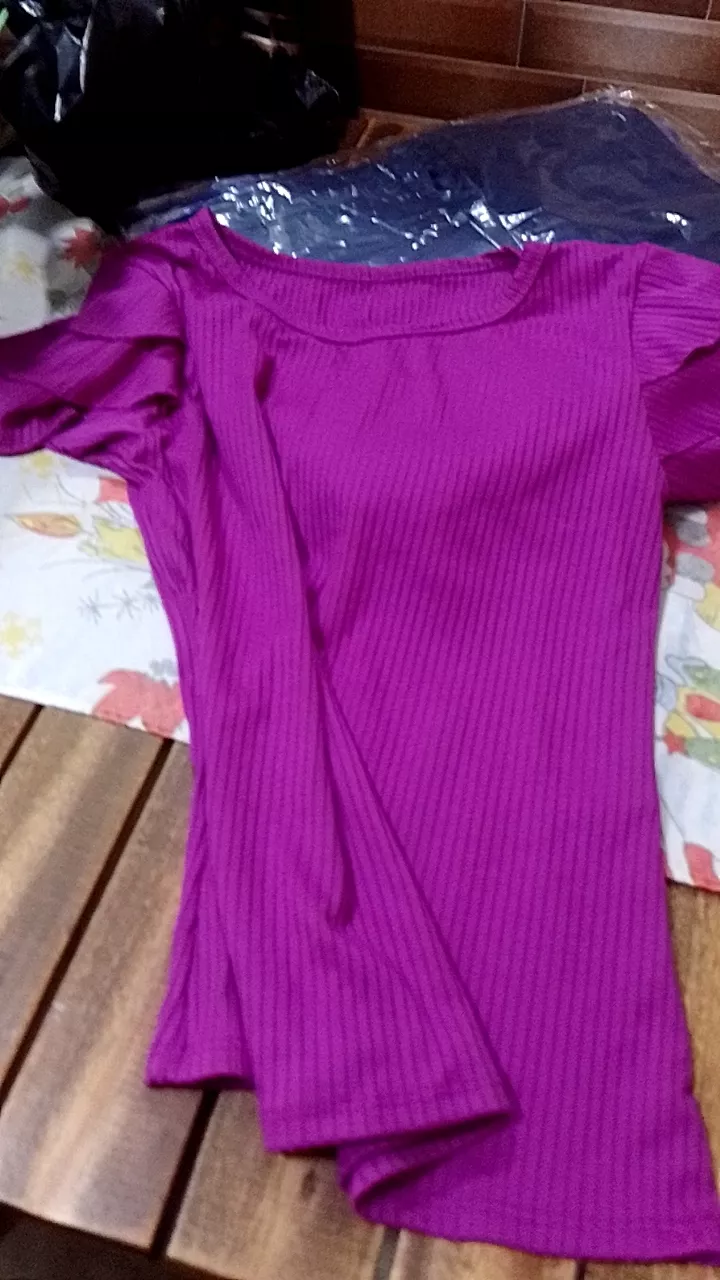 Blusa Manga Curta Canelada Três Babados Tamanho Unico - Roxo