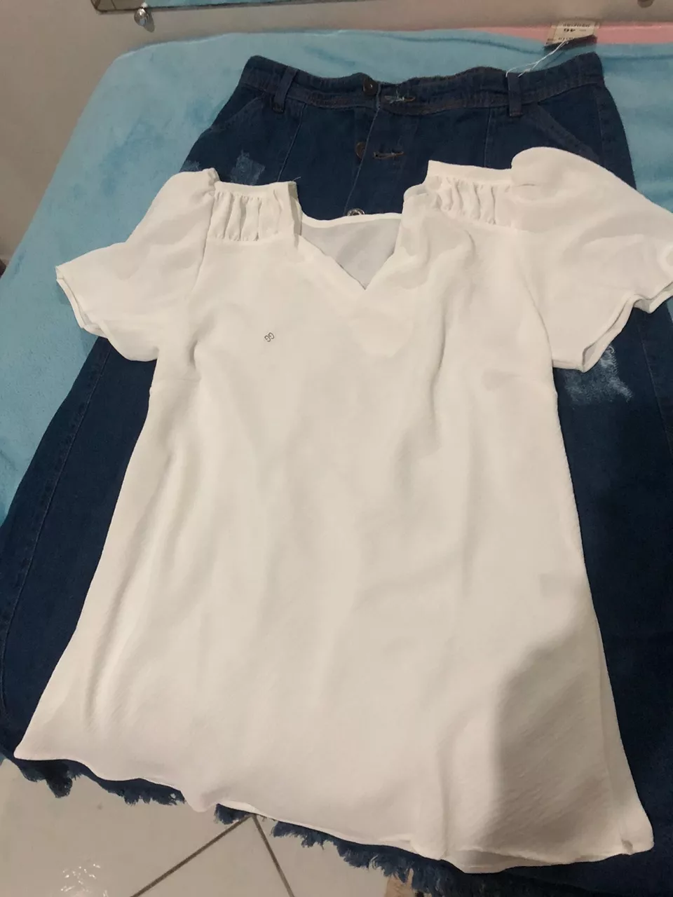 Compre a blusa feminina manga curta com detalhe em elástico no ombro na loja online Raryel. Aproveite nossos preços baixos e promoções!