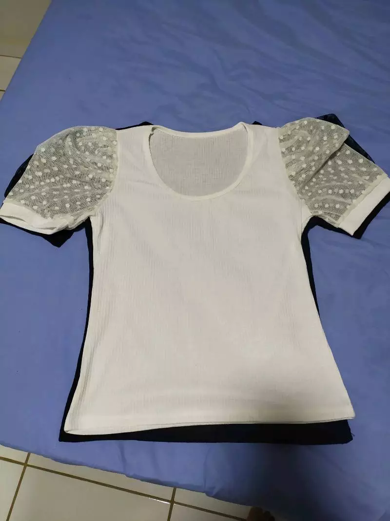 Blusa manga curta feminina gola rasa tule bufante canelada - G