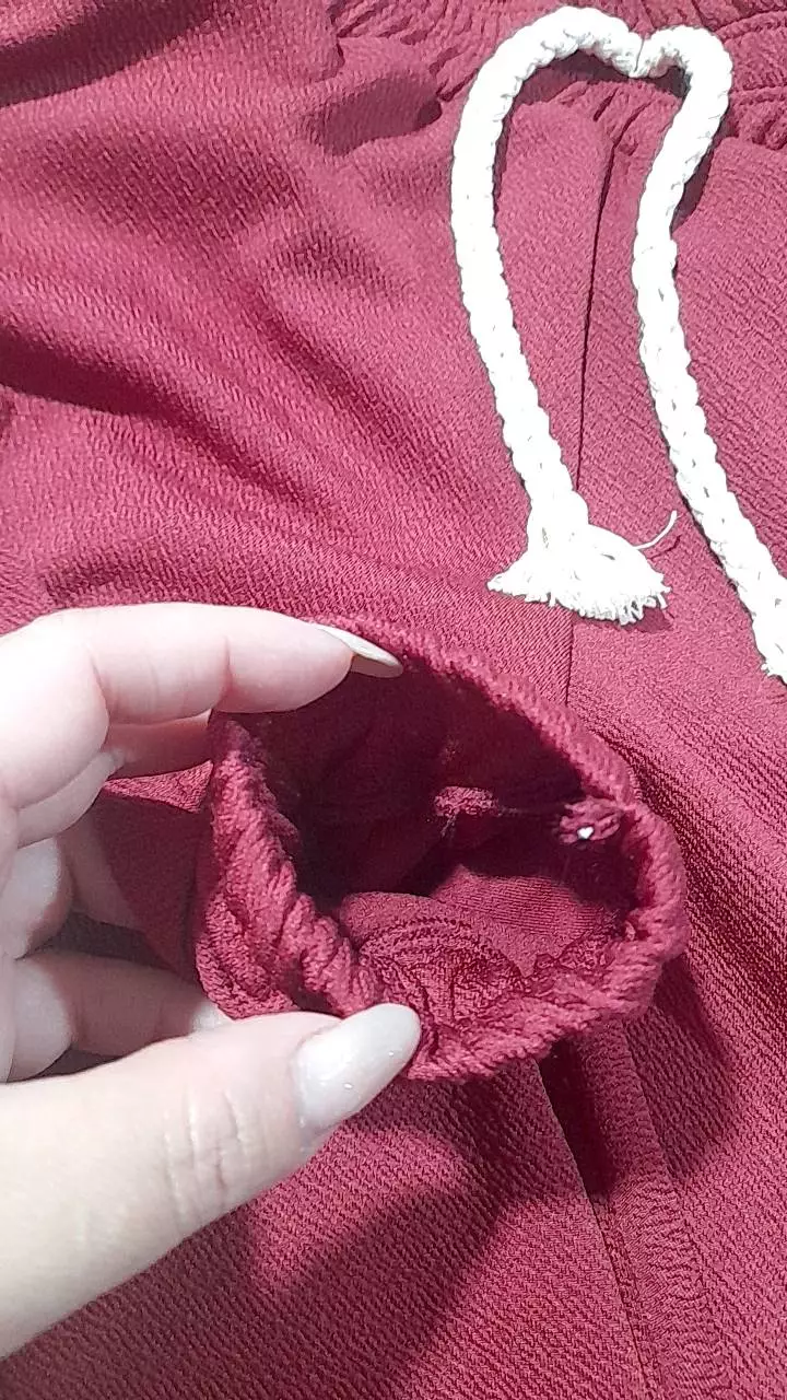 Elástico Na Cintura e Pernas Franzidos Para Ficar Elegante