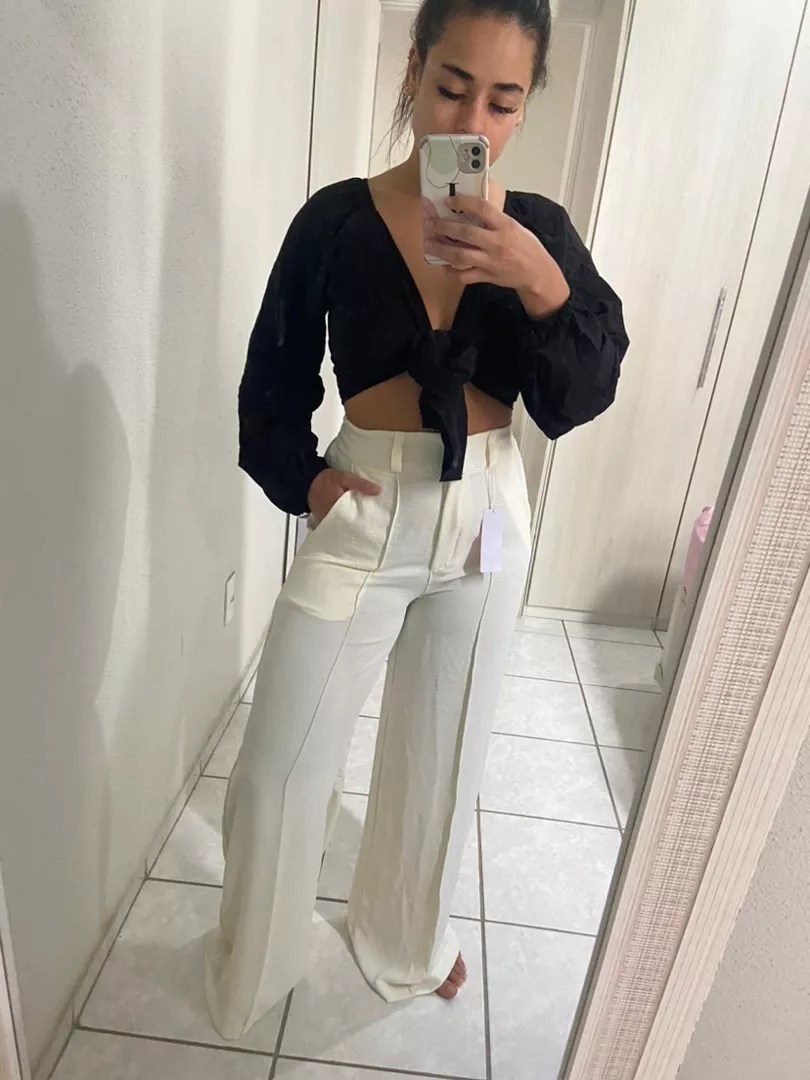 A Blusa Manga Longa Cropped Frente / Costa Multiformas Amarrar Elástico Pulso é uma peça versátil que pode ser usada de várias formas diferentes. Seu design permite amarração tanto na frente quanto nas costas, oferecendo um estilo único para cada ocasião. Possui mangas longas flare que adicionam um toque elegante ao look. O tecido é leve e confortável, perfeito para dias mais frescos. Além disso, a blusa conta com elástico nos punhos, proporcionando praticidade ao vestir. Compre agora mesmo na loja online de roupas Raryel e aproveite preços baixos, promoções e descontos exclusivos.