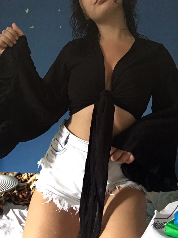 Compre a Blusa Cropped Amarrar Frente / Costa Manga Longa Flare Amarração Multiformas Babado na loja online de roupas Raryel. Aproveite preços baixos, promoções e descontos exclusivos!