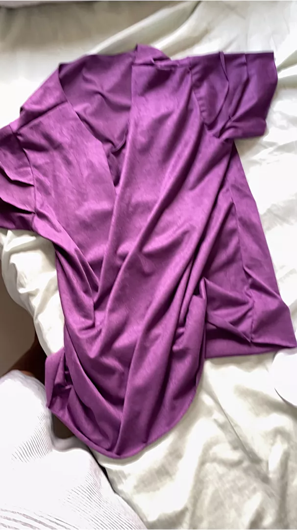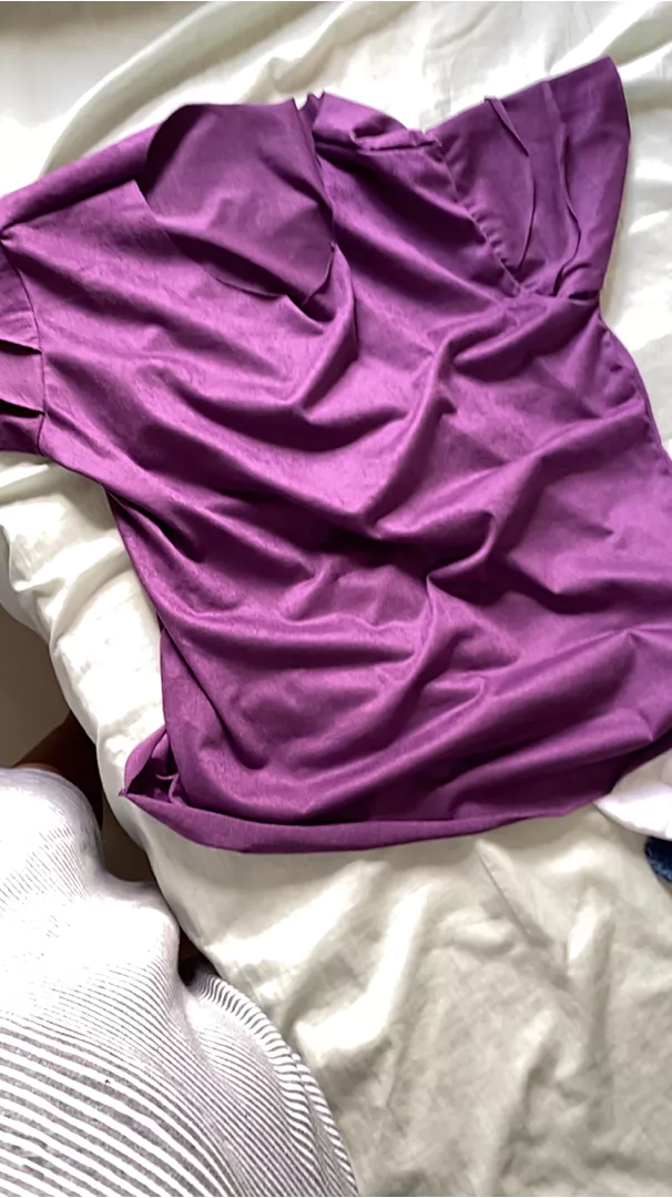 Blusa PREMIUM Manga Curta Suede BABADO 3 - Roxa