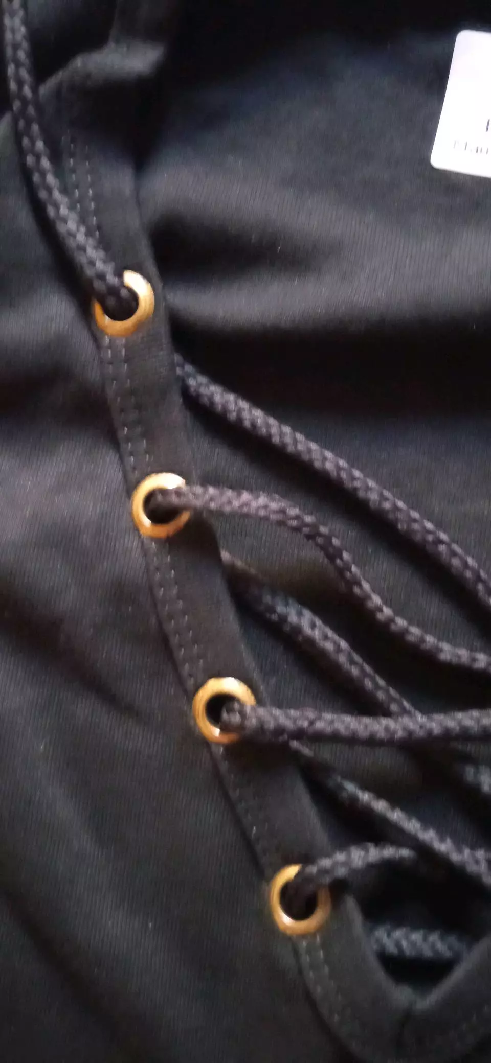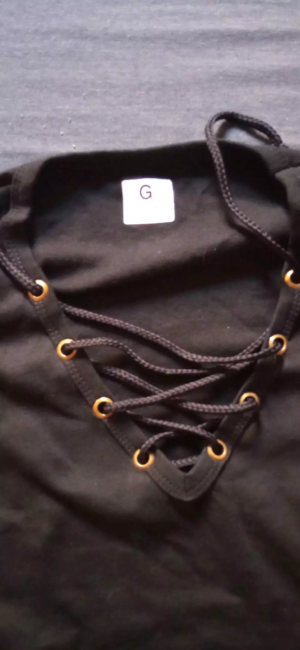 Blusa preta trançada, manga curta, 96% algodão e 4% elastano - G 40-42