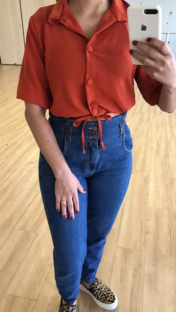 Blusas com botões em tecido duna - modelo 06 - Laranja
