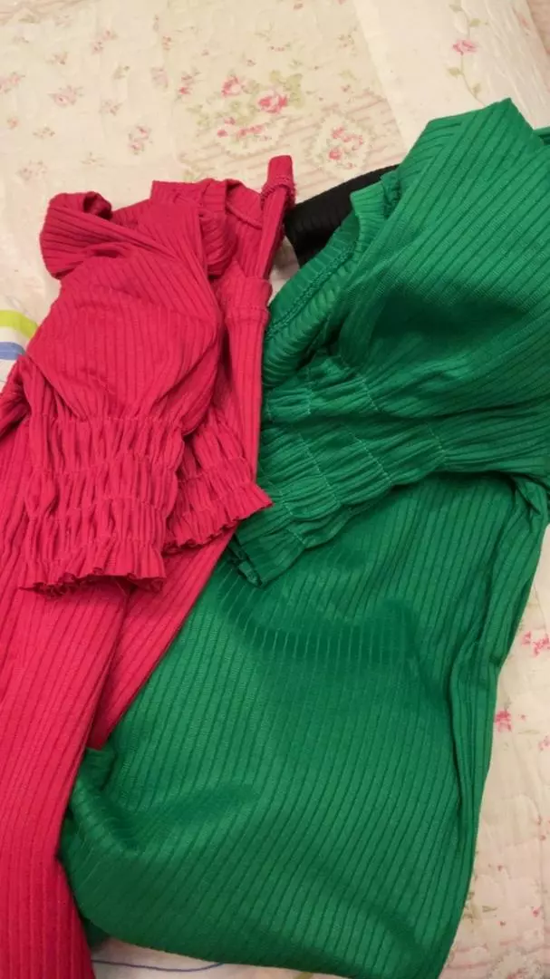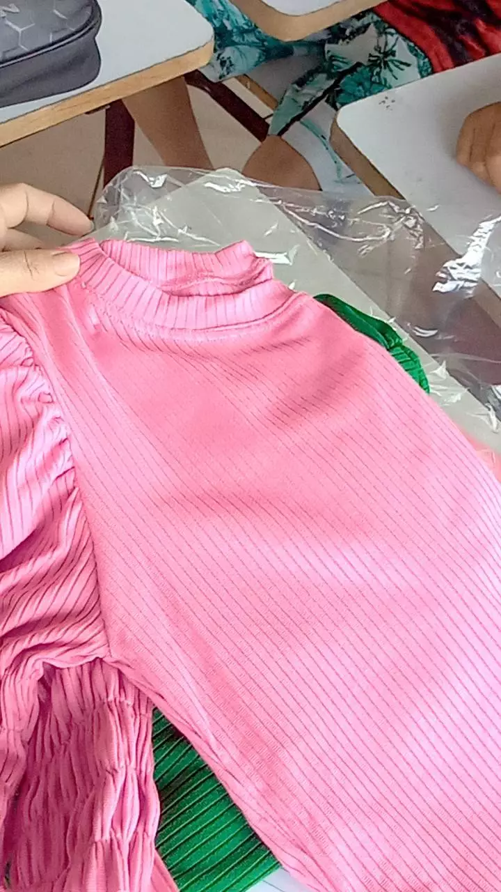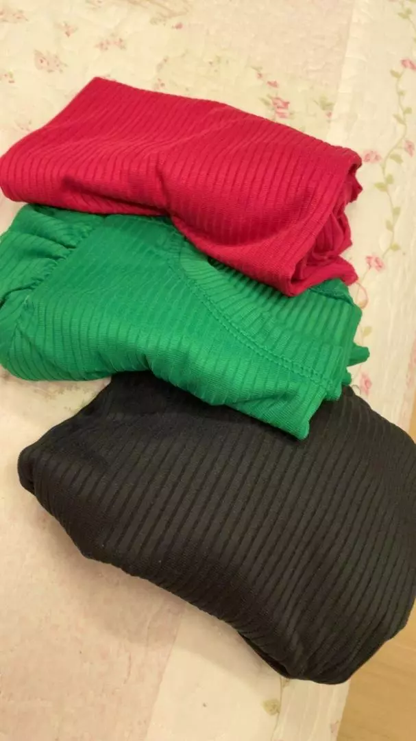 O tecido é canelado de excelente qualidade possui elasticidade e veste até 42 confortavelmente