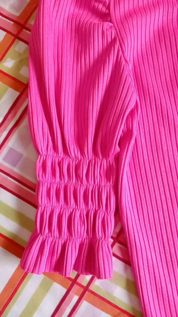 Blusinha Canelada Princesa Bufante Manga Curta Feminina - Cereja