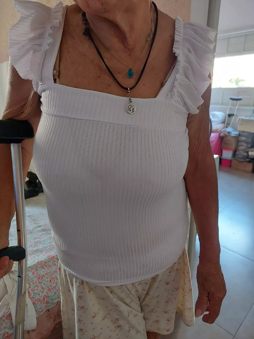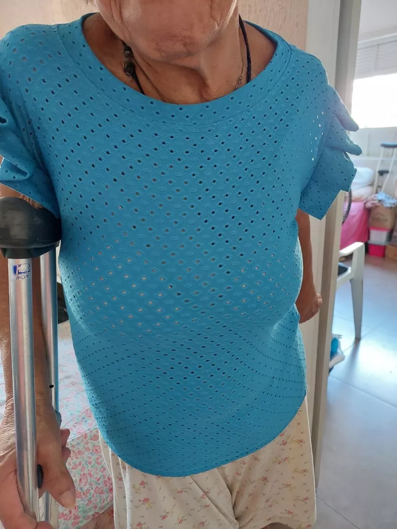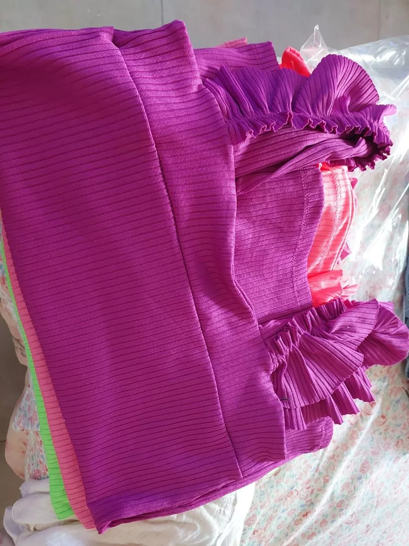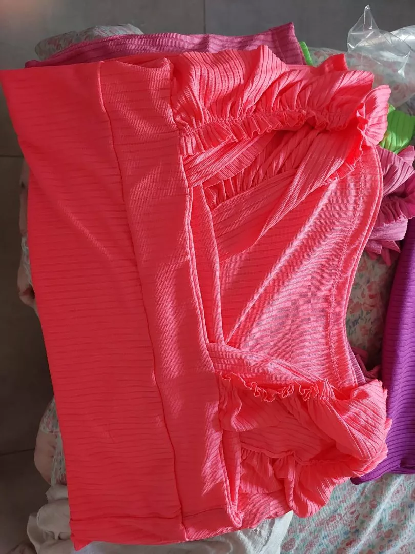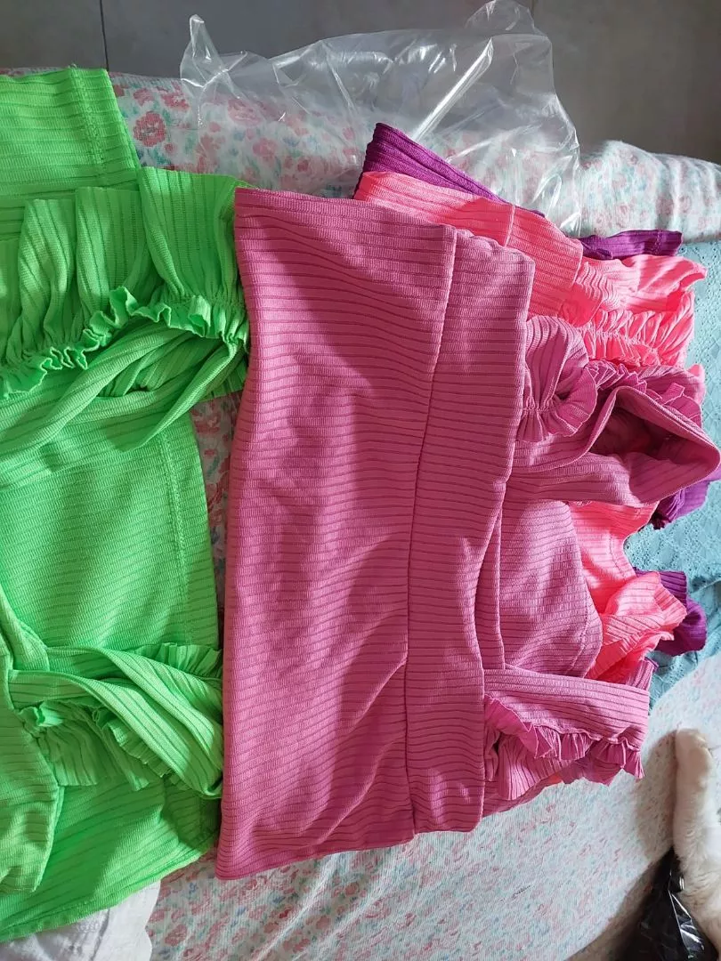 O tecido é canelado de excelente qualidade possui elasticidade e veste até 42 confortavelmente