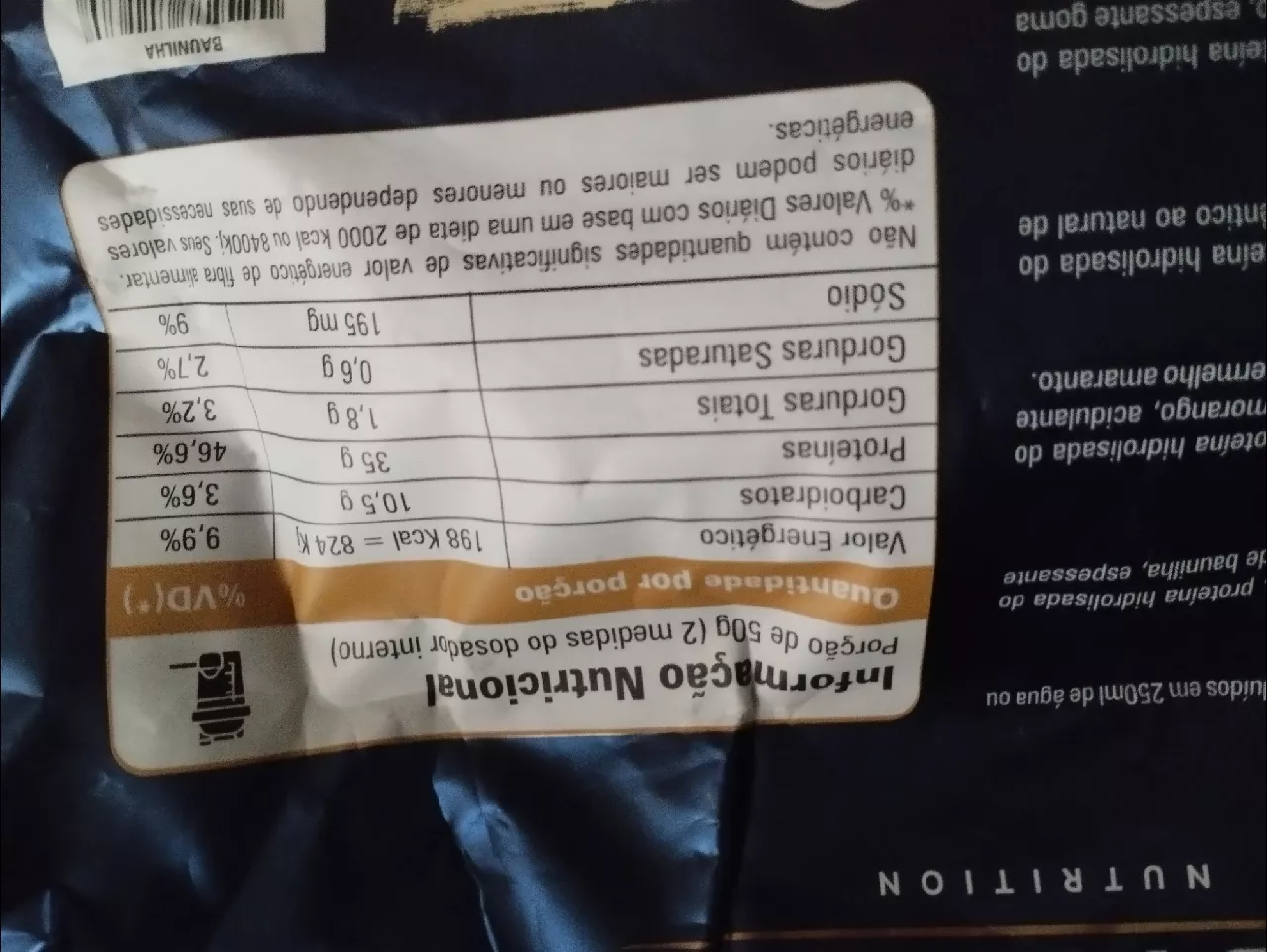 INGREDIENTES Concentrado proteico do soro do leite WPC colágeno hidrolisado proteína hidrolisada do tripo proteína isolada da soja albumina aroma idêntico ao natural de chocolate ao leite espessante goma xantana edulcorante sucralose