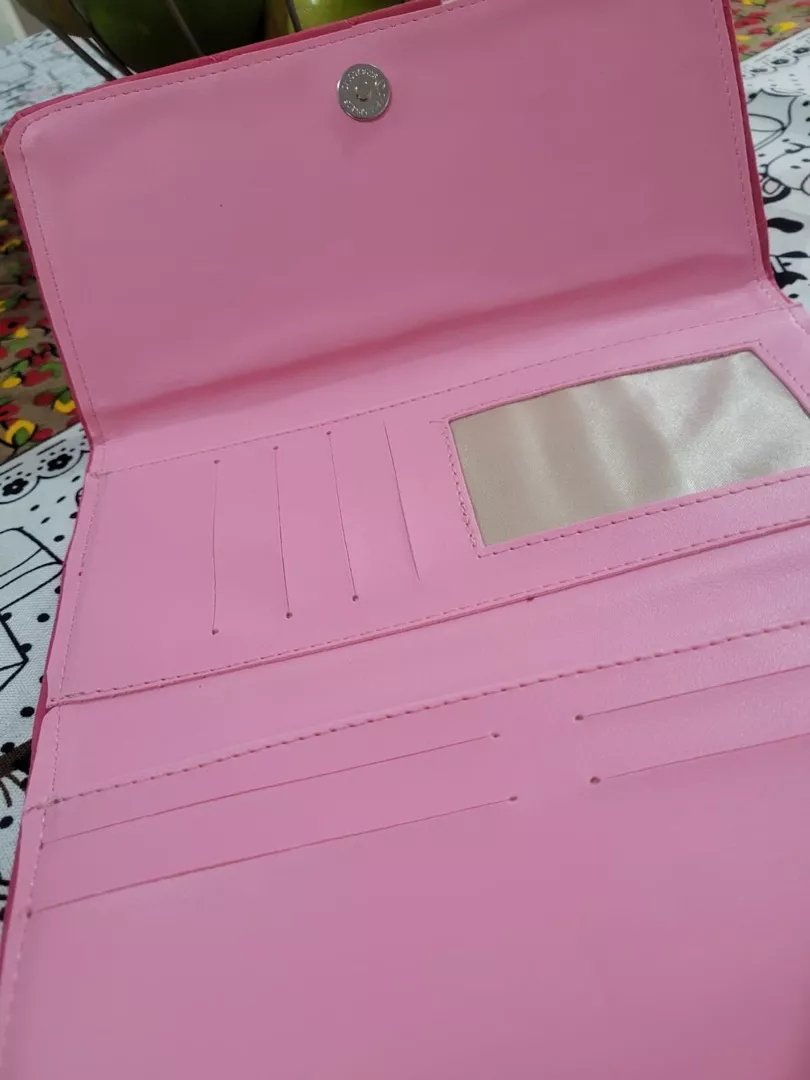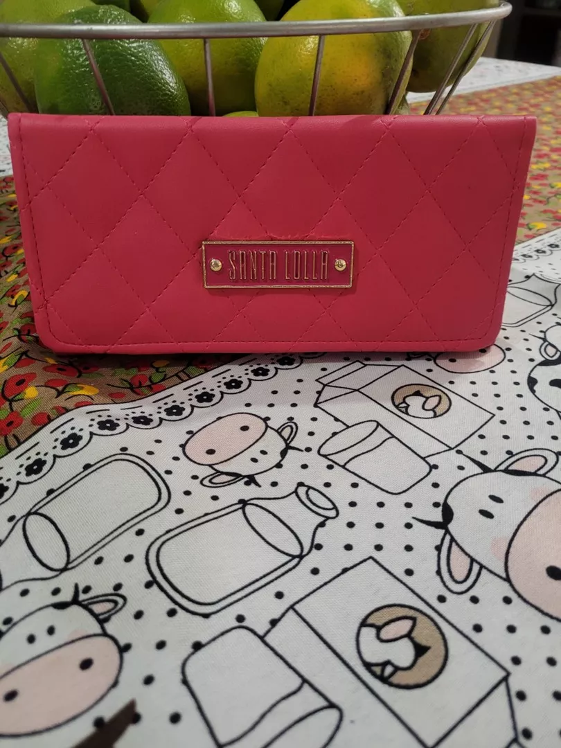 carteira feminina em couro sintético premium trabalhado com plaquinha SL fechamento em flip com Botão magnético cores variadas