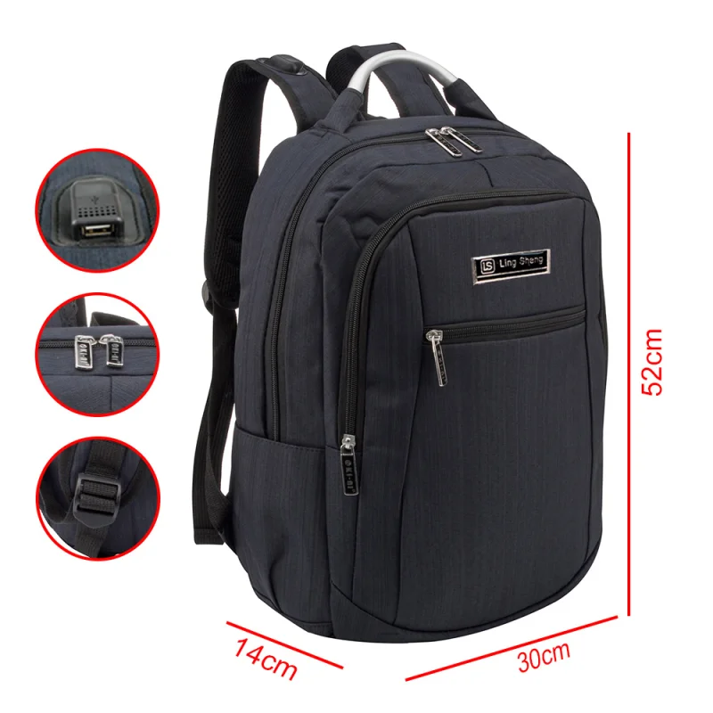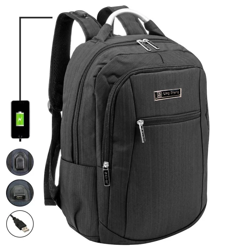 Em um momento crítico como pode não haver poder A mochila tem um cabo usb uma porta dentro mochila é para ligar com carregadore uma outra porta por fora é para ligar um cabo de celular A nova postura de carregamento não é apenas elegante mas também muito conveniente e você não precisa mais se preocupar com a falha de energia do seu telefone a qualquer hora em qualquer lugar