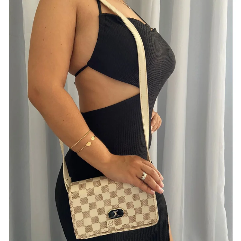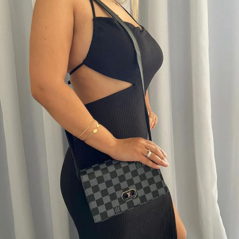Bolsinha feminina transversal ou de lado - Preto Xadrez