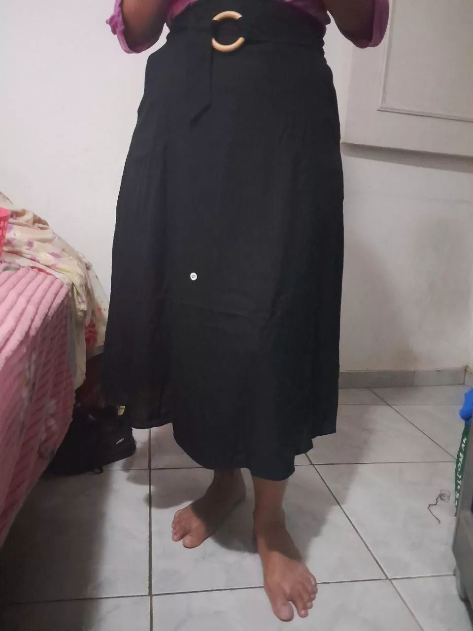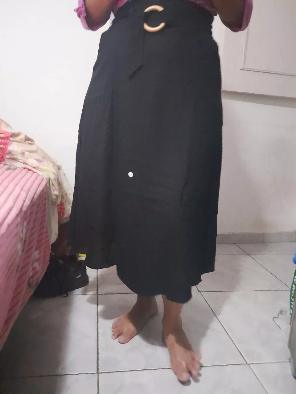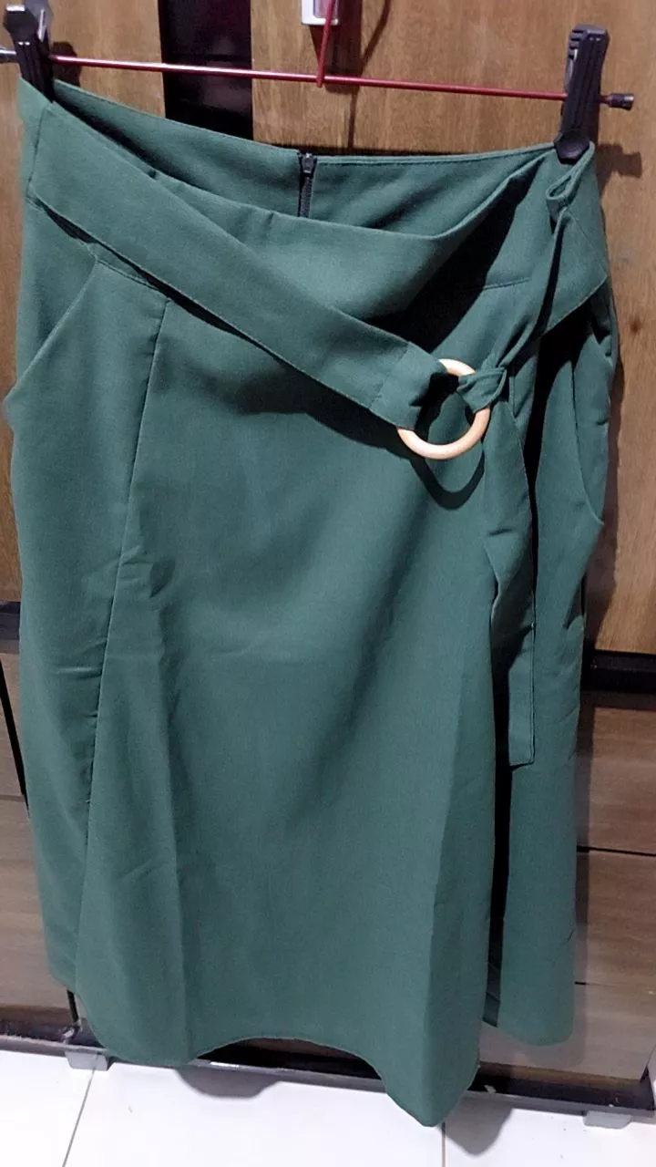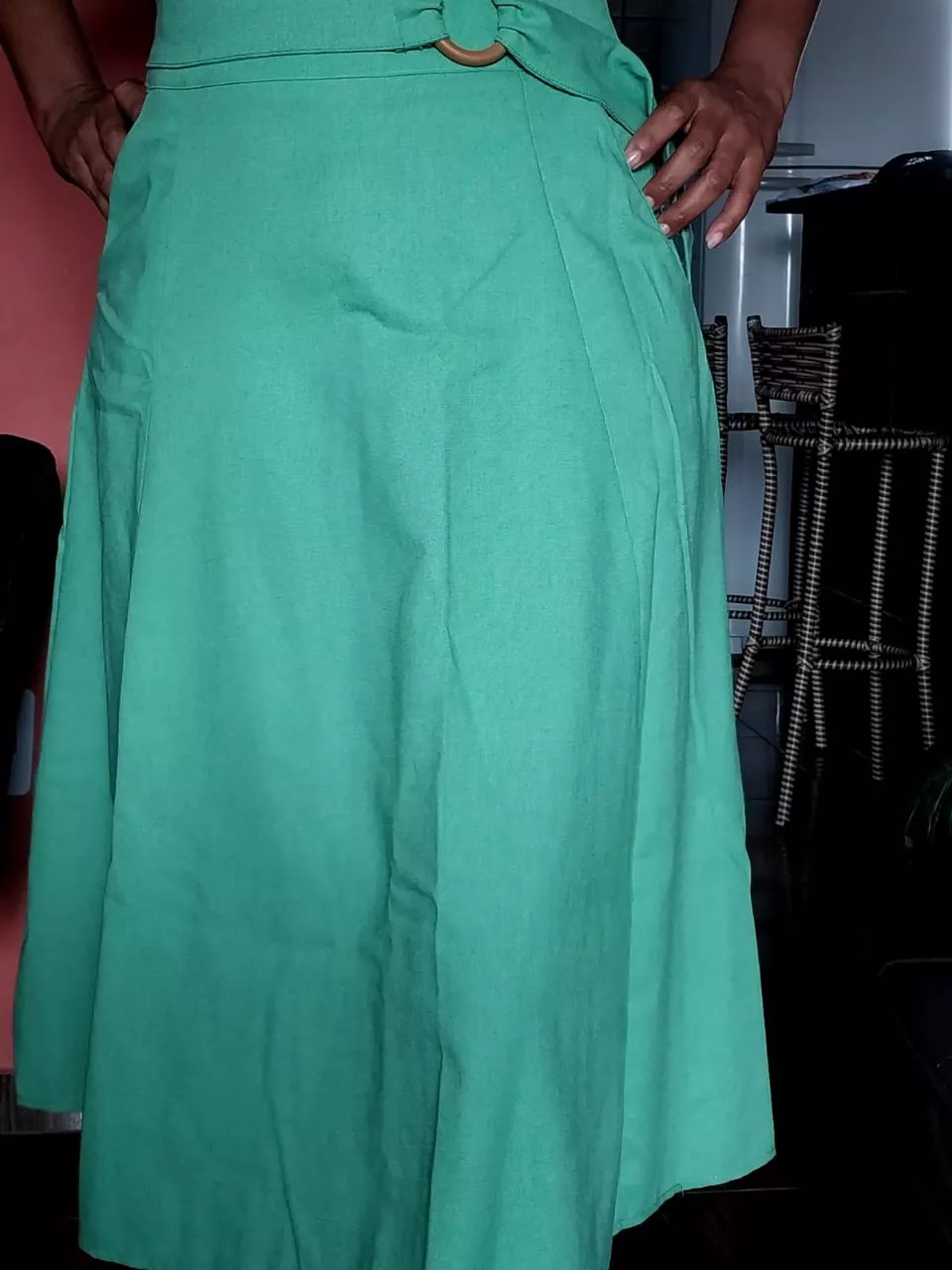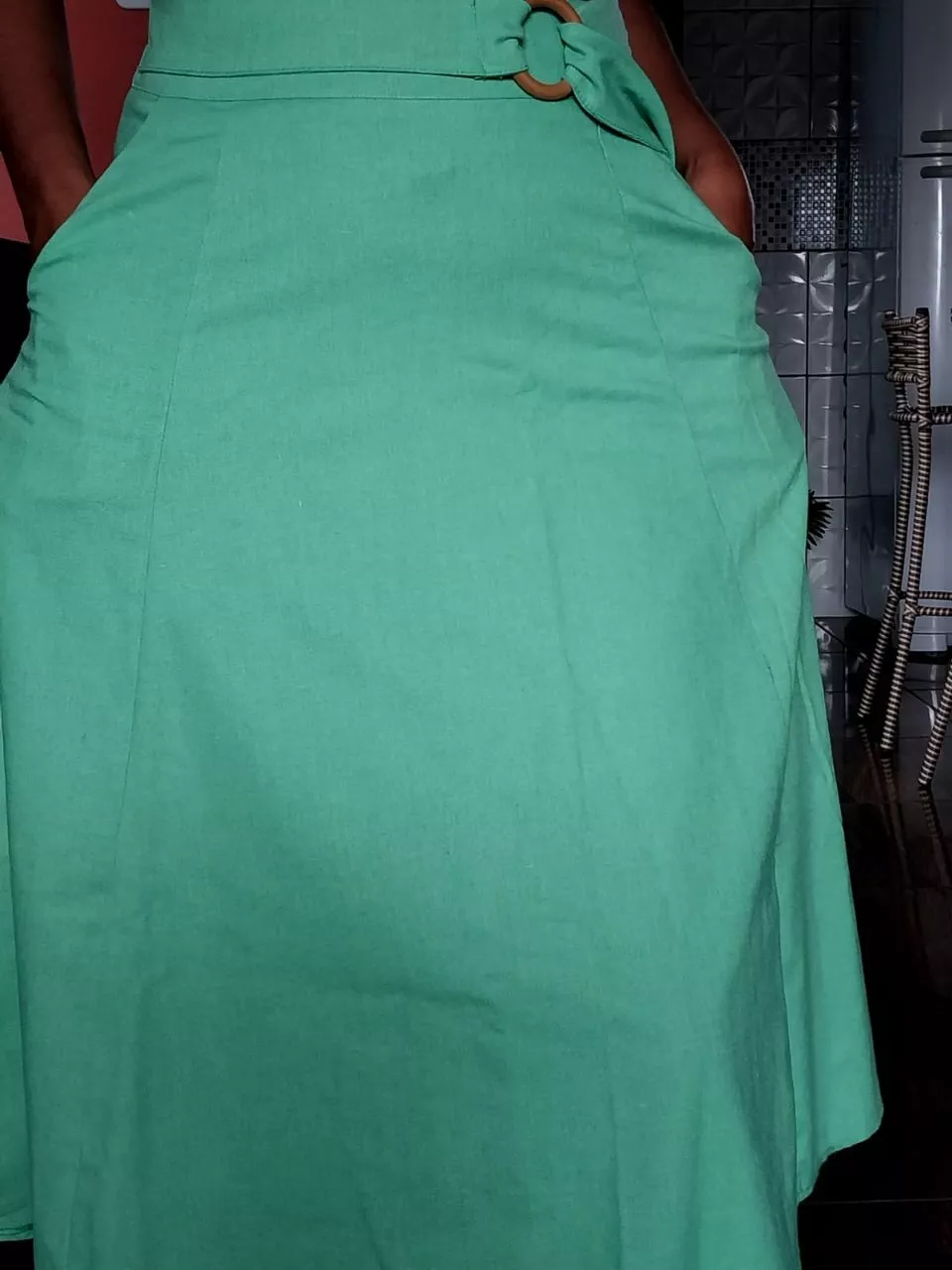 Saia em Tecido Linho com Bolsos e Cinto e Fivela especial e forro interno a fivela pode variar o modelo