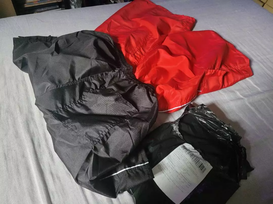 Possuem 1 listra branca nas laterais e três bolsos um na frente um na parte de trás e um na lateral e não possuem forros São reforçadas com três costuras nas laterais no fundo e na parte de trás Possuem elástico e cadarço na cintura