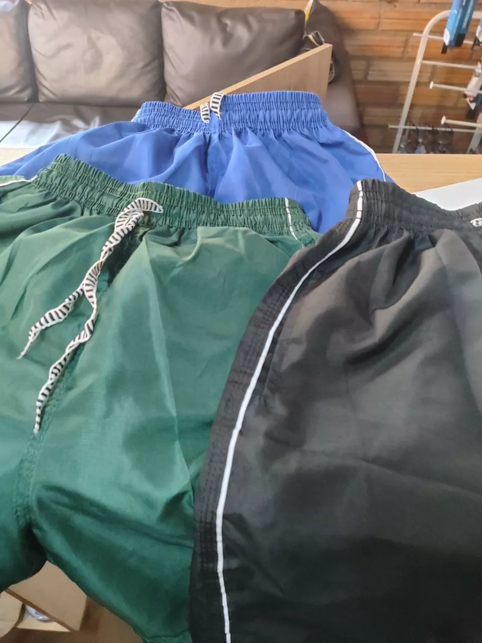 As bermudas são confeccionadas em tecido 100 poliéster É um material resistente que não amarrota fácil de fácil lavagem e secagem rápida