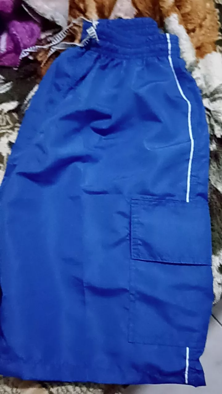 Possuem 1 listra branca nas laterais e três bolsos um na frente um na parte de trás e um na lateral e não possuem forros São reforçadas com três costuras nas laterais no fundo e na parte de trás Possuem elástico e cadarço na cintura