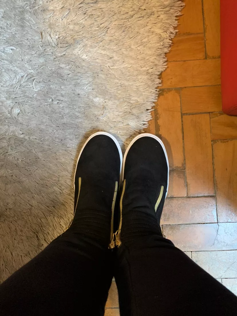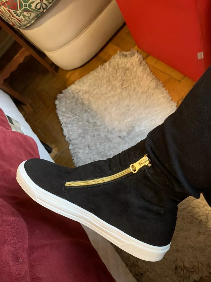 Tênis Feminino Ziper Em Dourado Cano Alto Bota 103