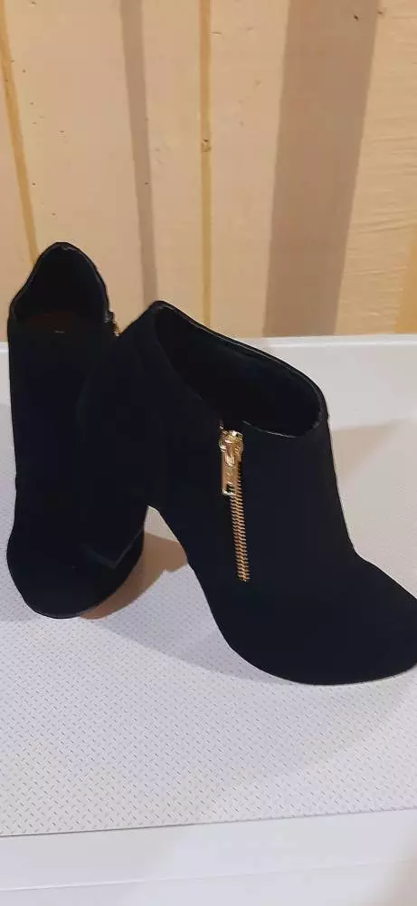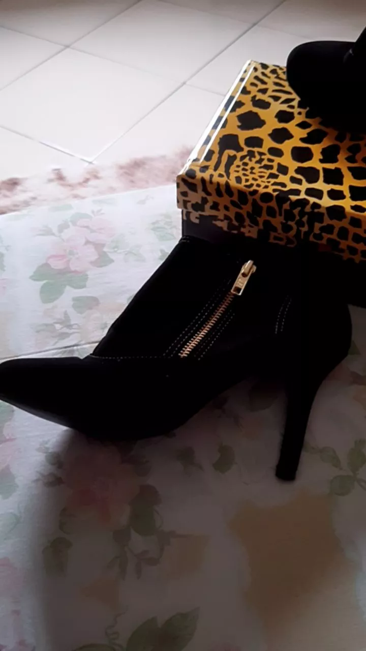 Compre a Bota Feminina Melf Shoes Nobuck Preto Ziper Ouro Salto 9 cm na loja online de roupas Raryel. Aproveite nossos preços baixos e promoções!