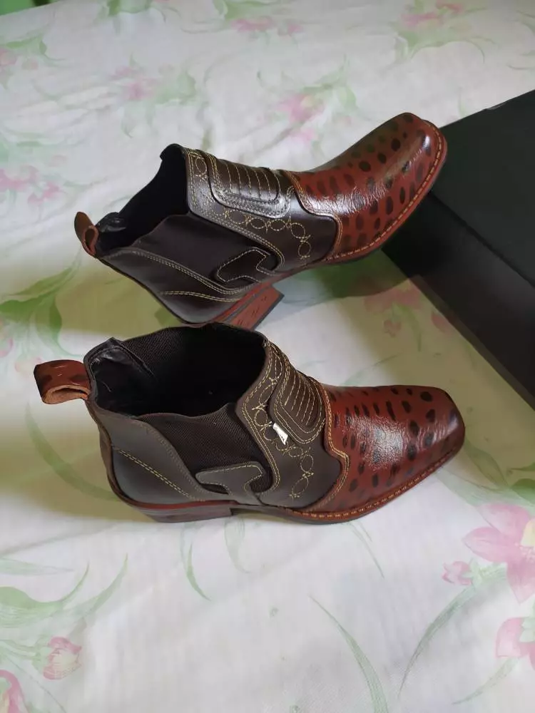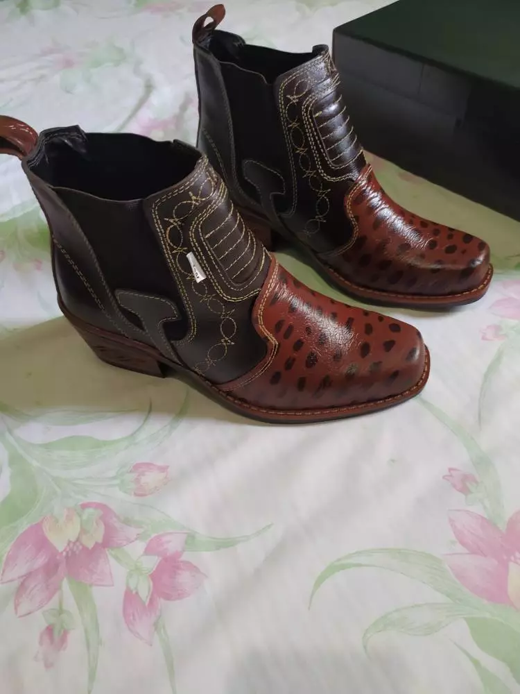 Botas Country em Couro Legítimo - Modelo 1011 - CAFE/ESTAMPADO